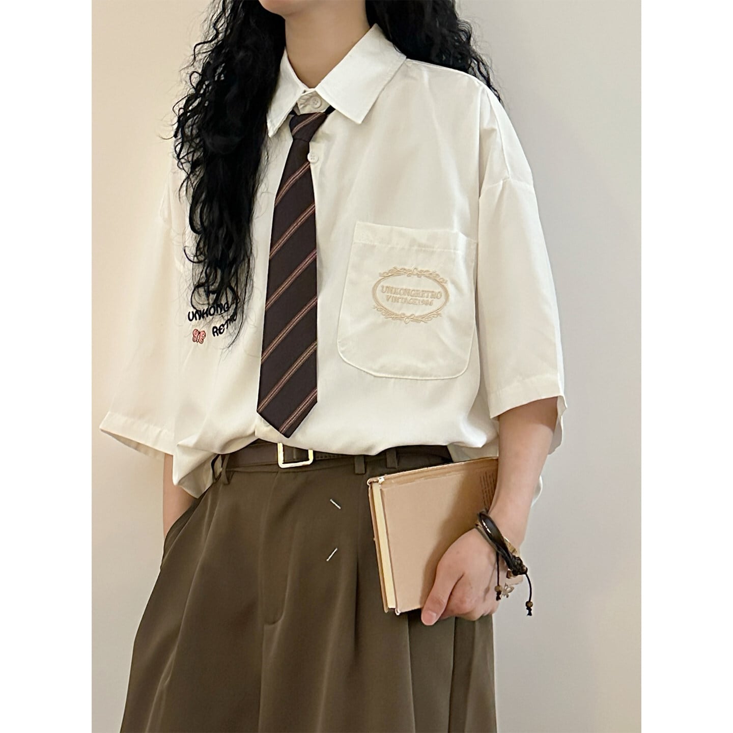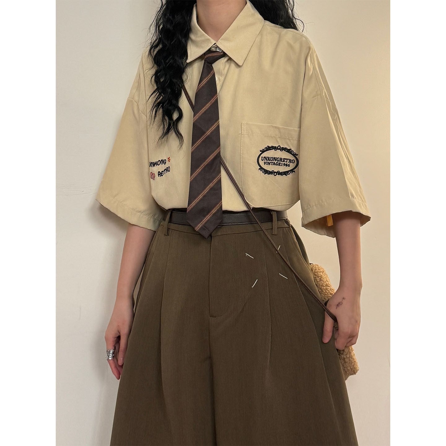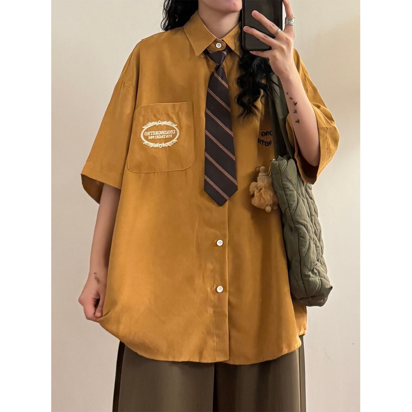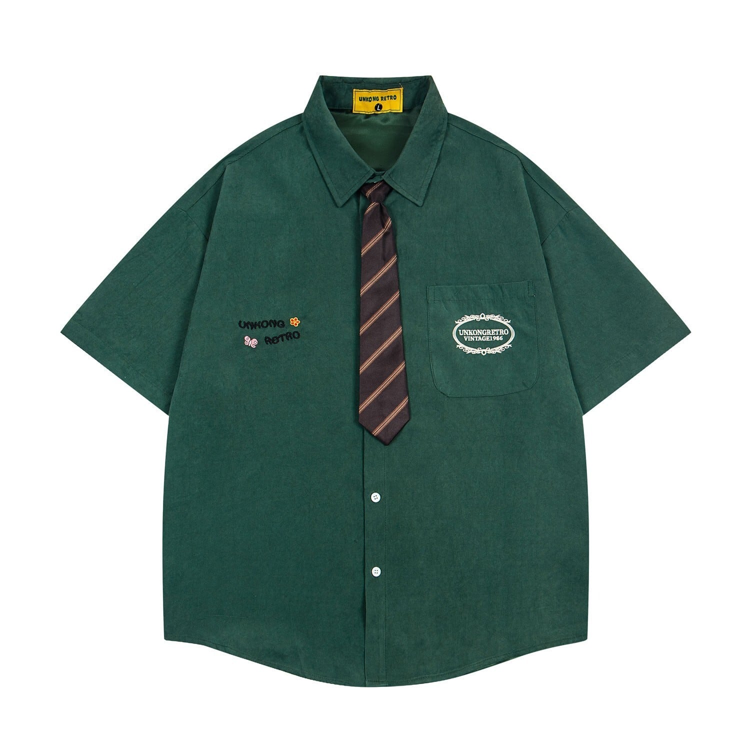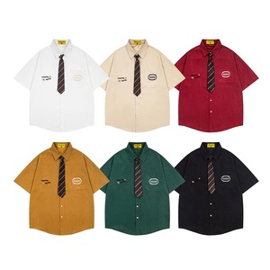♥着るだけでレトロ可愛い!【UATONLINEシリーズ】★シャツ★ 6color ネクタイ付き トップス 半袖シャツ ユニセックス