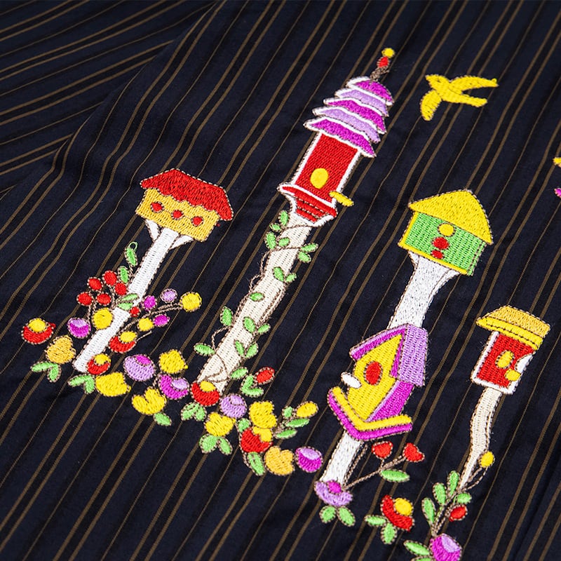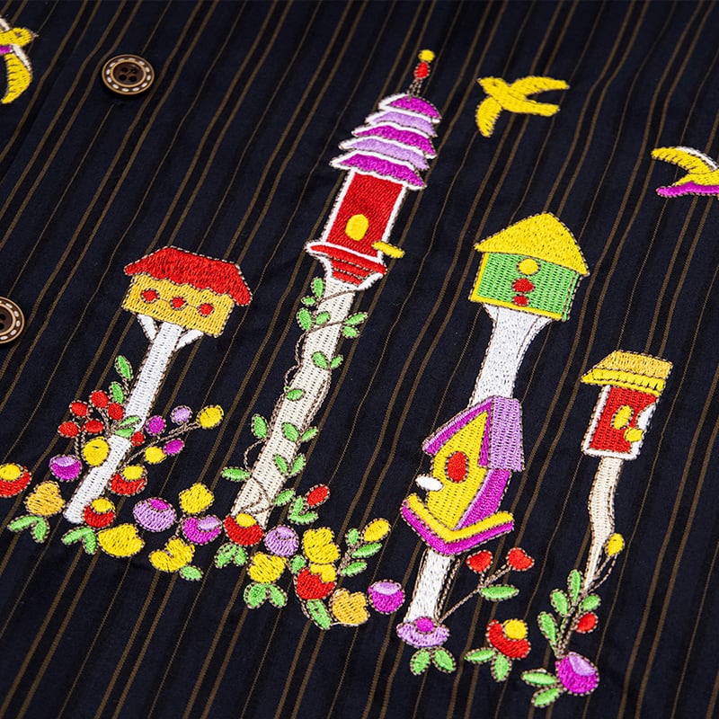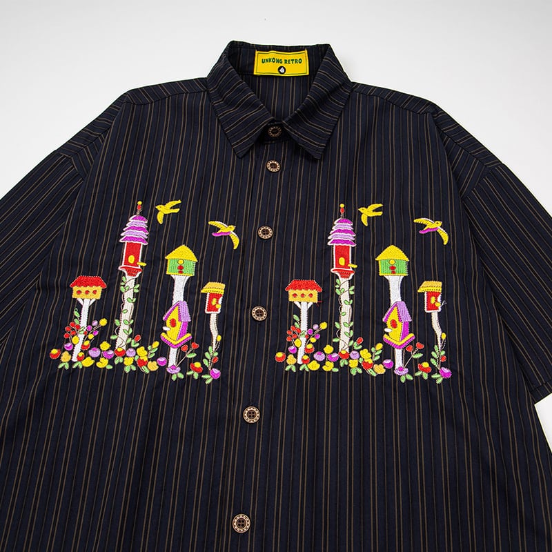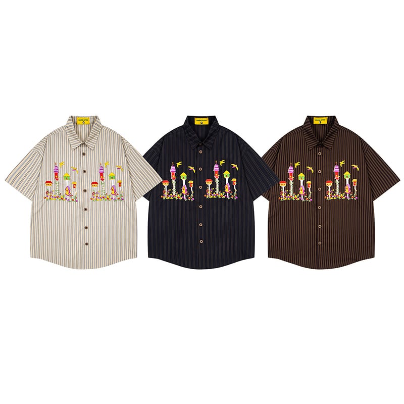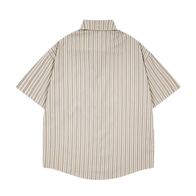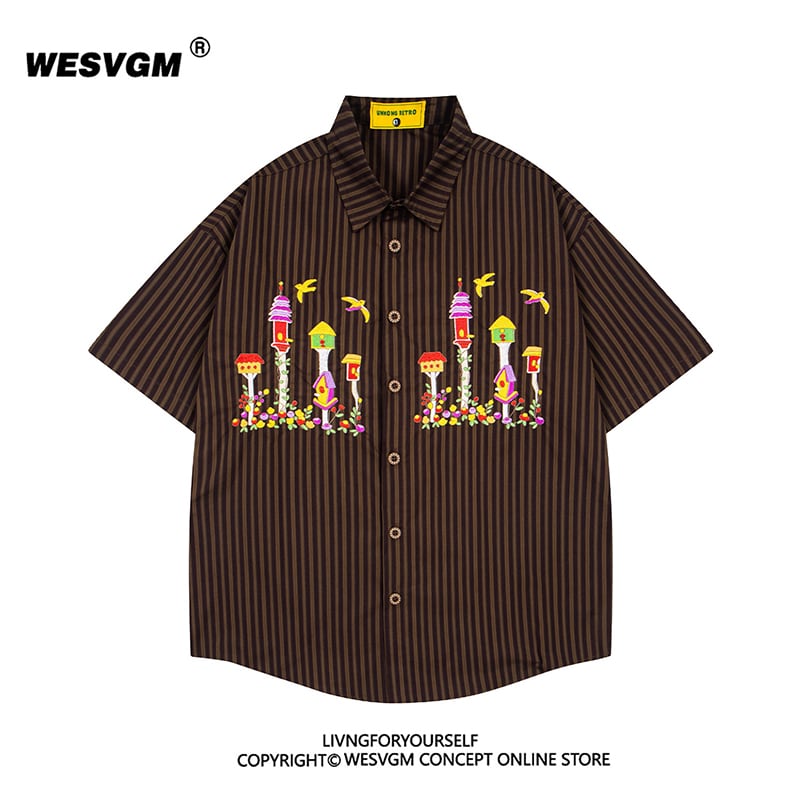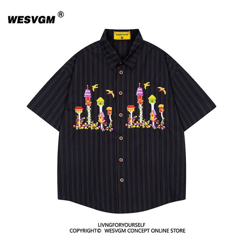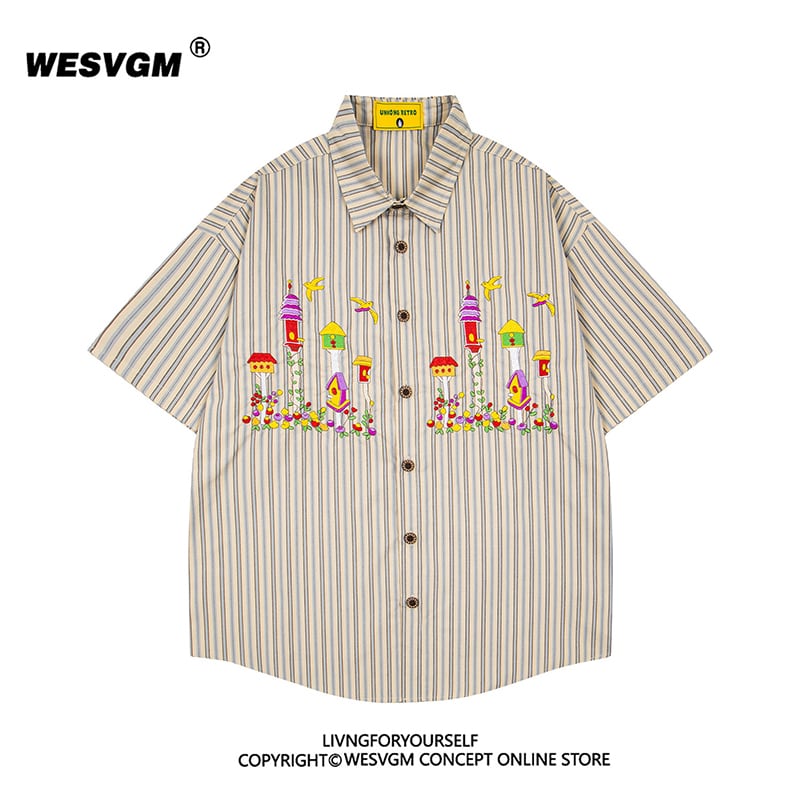 ♥これ一枚で「おしゃれさん」になれる。刺繍が絶妙!【WESVGMシリーズ】★シャツ★ 3color トップス 半袖シャツ ユニセックス 縦縞 縞模様