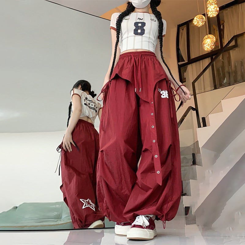 ♥ギャル女子のワードローブに絶対欲しい!【CHAORENシリーズ】★カジュアルパンツ★ 2color ボトムス ズボン レッド ブラック