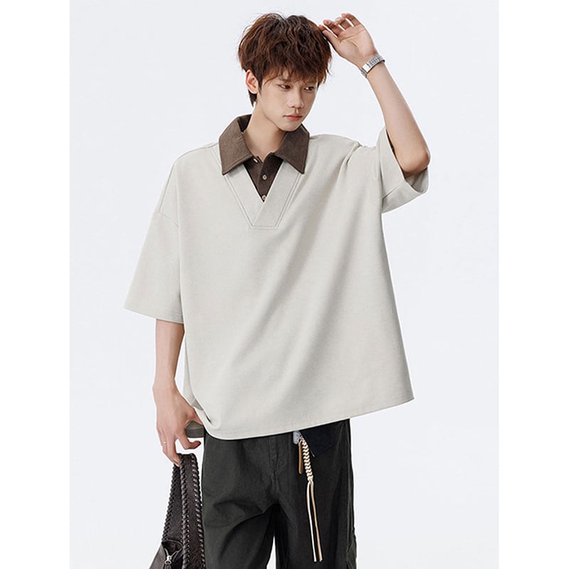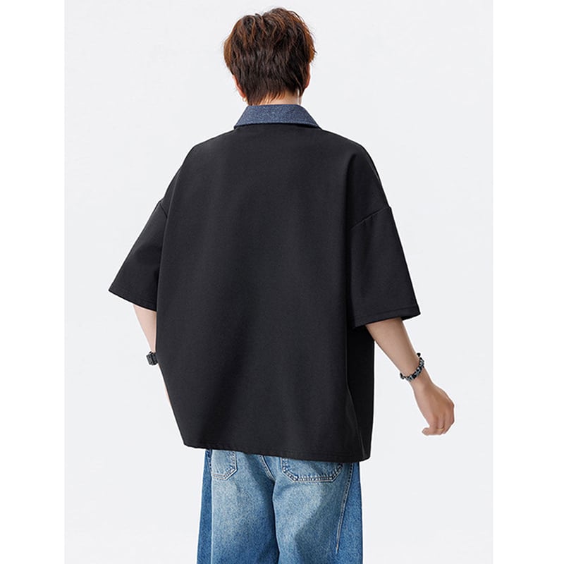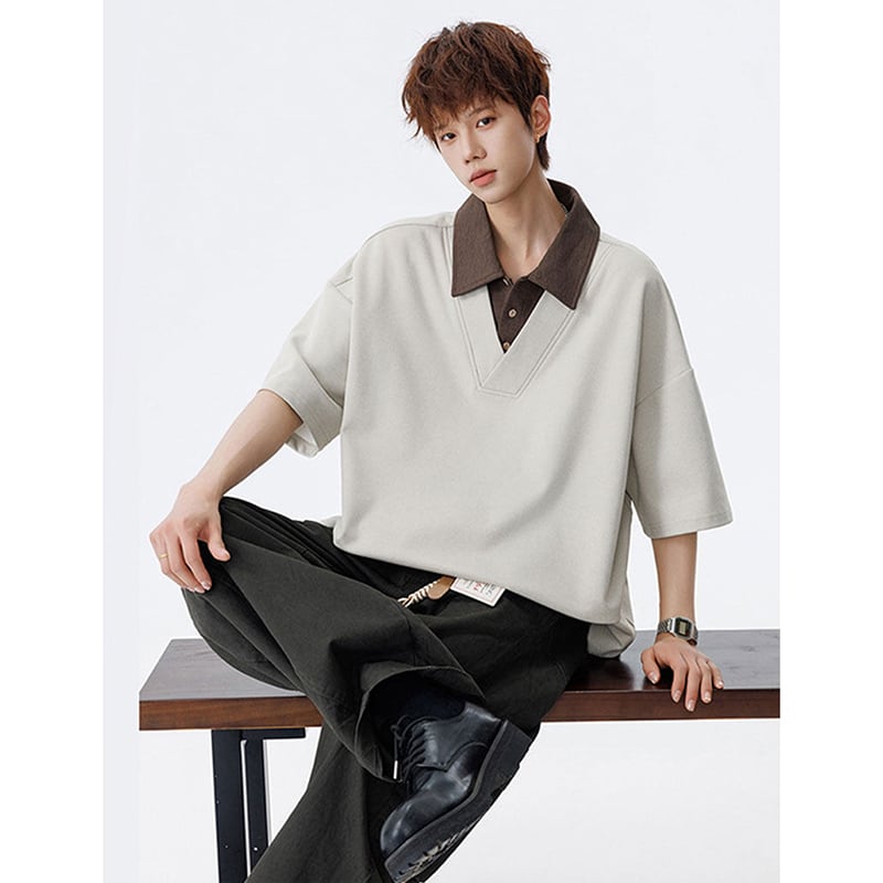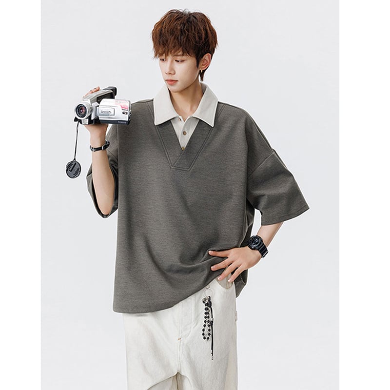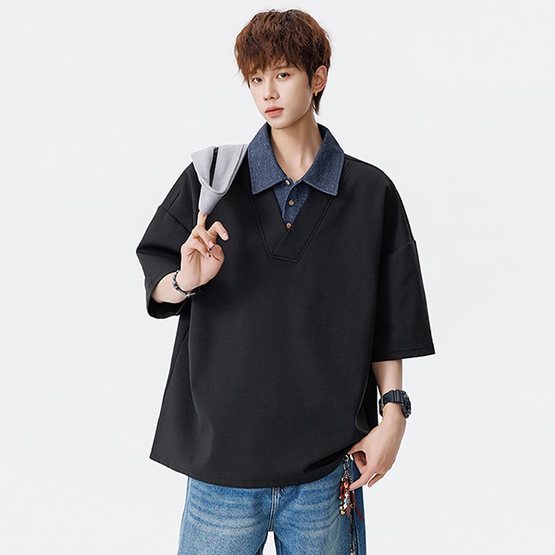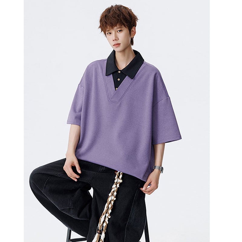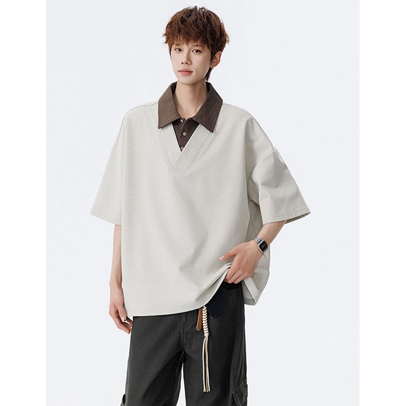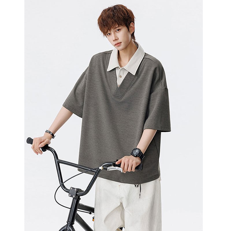 ♥2枚着てる見え?フェイクだけどオシャレ!【ZUOFEILIシリーズ】★POLOシャツ★ 4color トップス 半袖 ユニセックス メンズ 配色