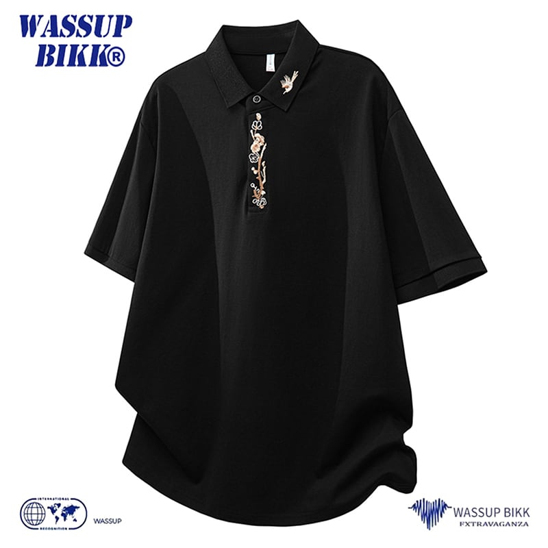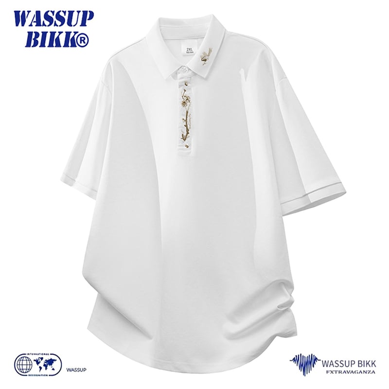 ♥刺繍入りPOLOシャツ!【WSシリーズ】★POLOシャツ★ 刺繍 2color トップス 半袖 ユニセックス メンズ カジュアル 黒 白