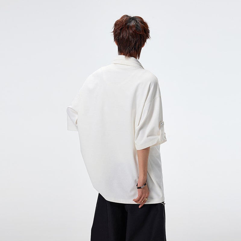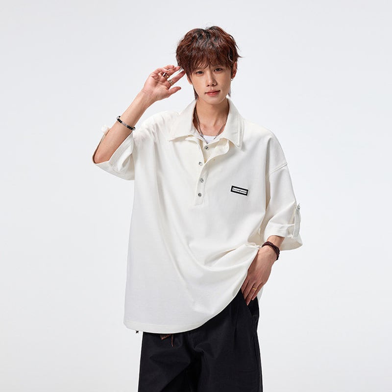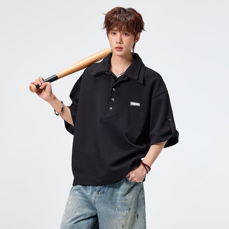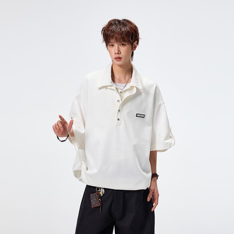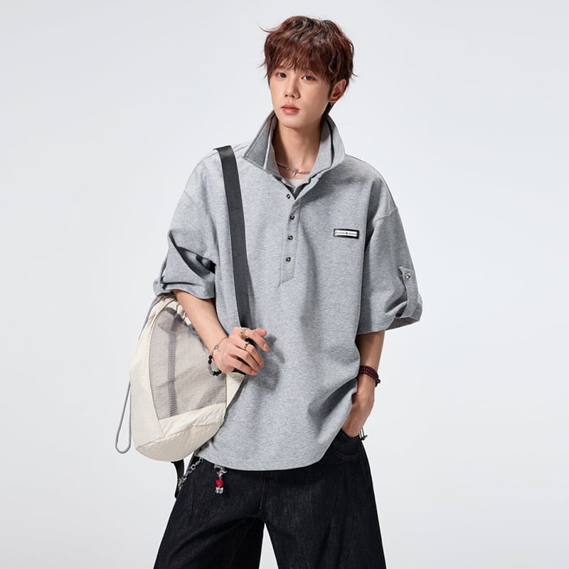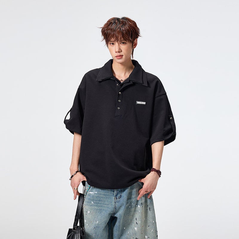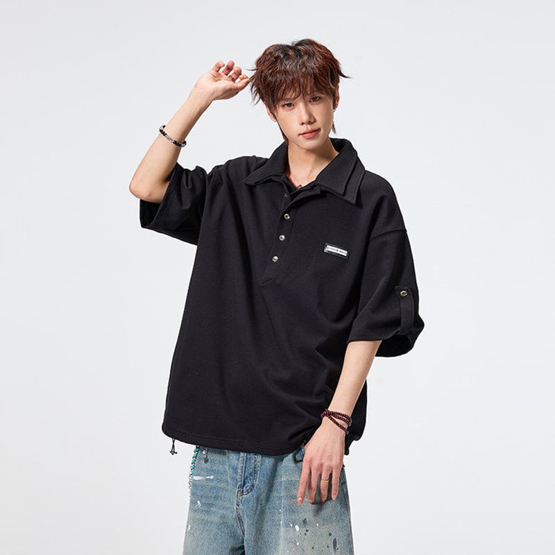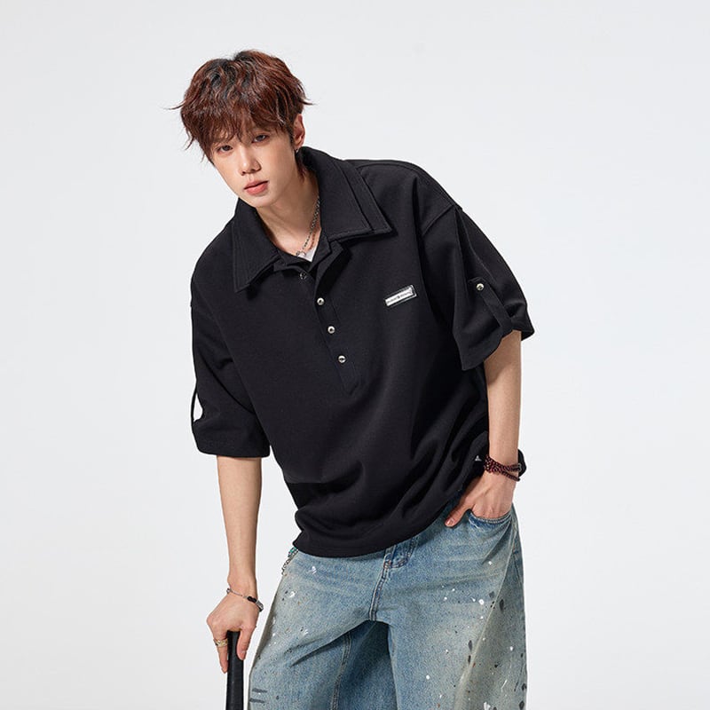 ♥ダブル襟デザインPOLO!【SYシリーズ】★POLOシャツ★ 3color ダブル襟 トップス 半袖 ユニセックス メンズ カジュアル