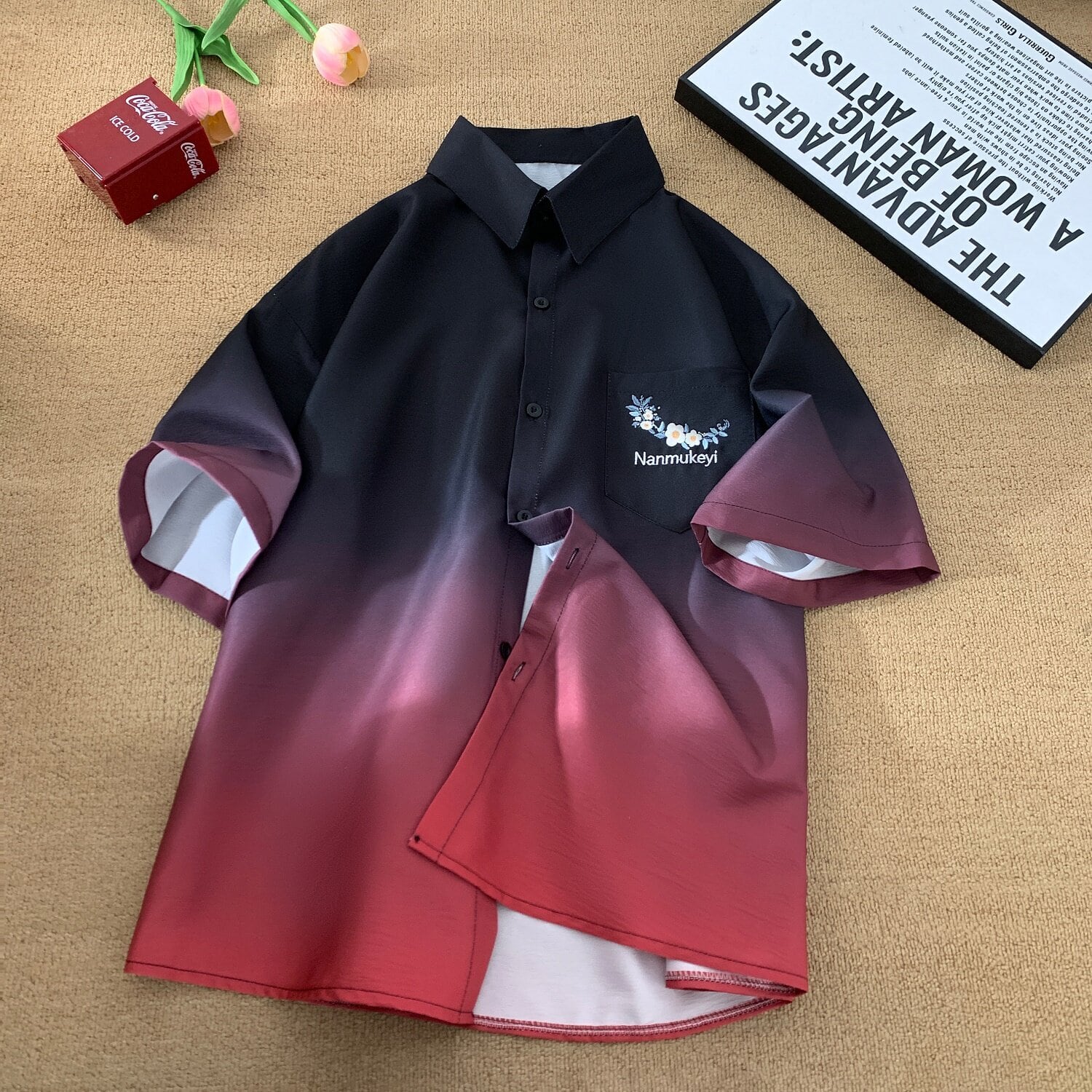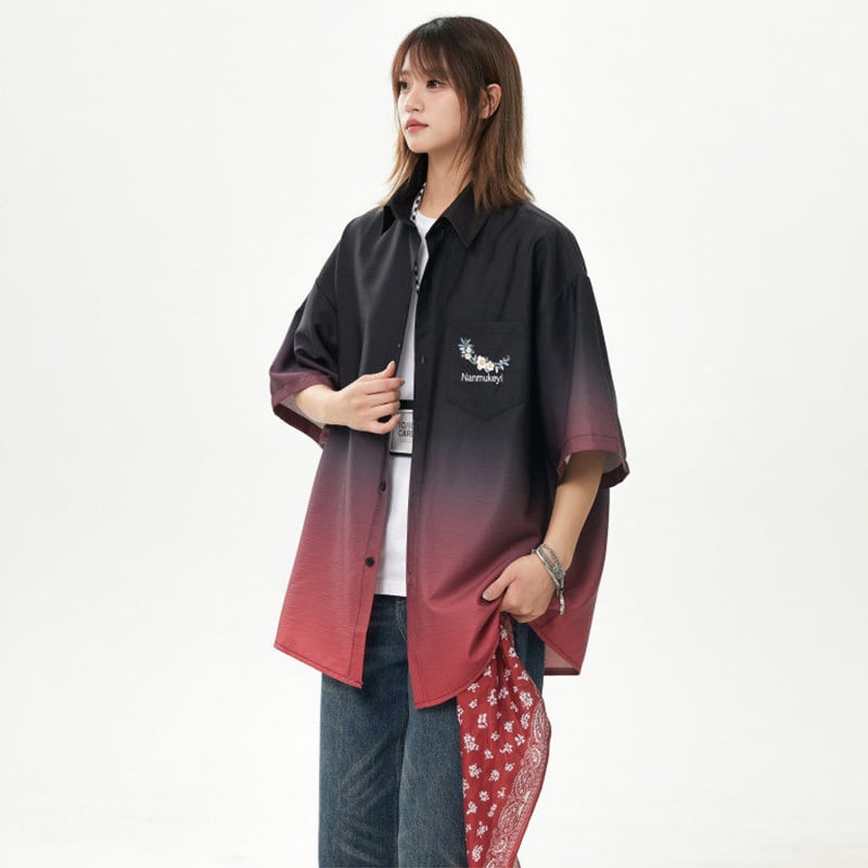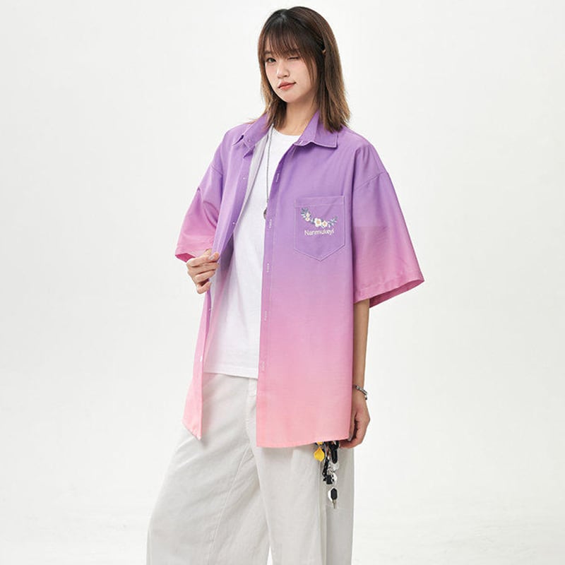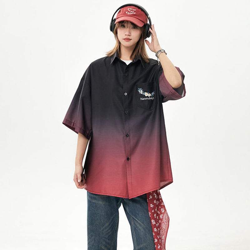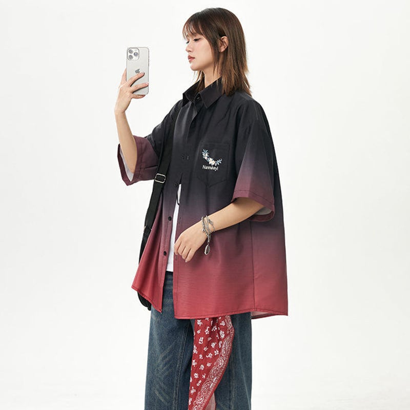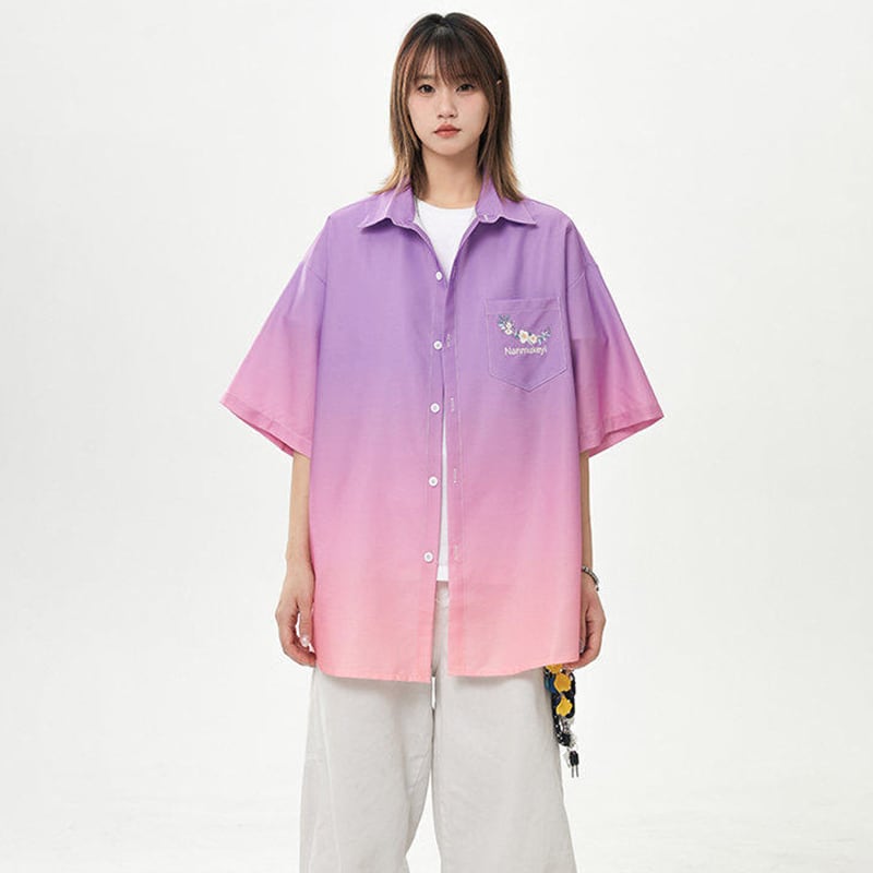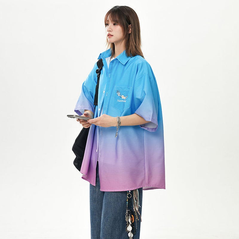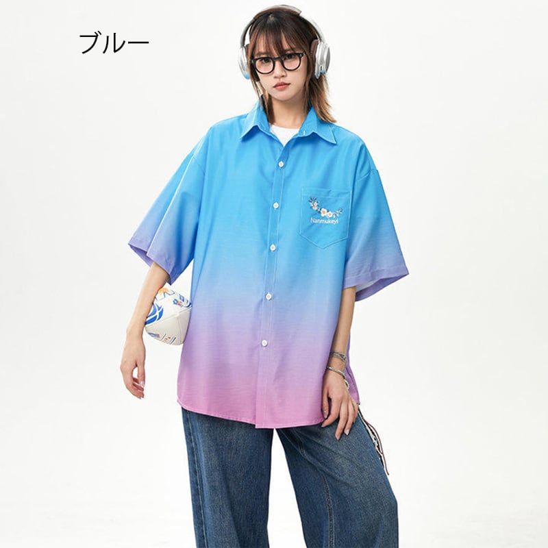 【藤伊曼シリーズ】★シャツ★ 3color トップス 半袖 ユニセックス メンズ グラデーション