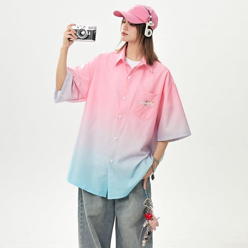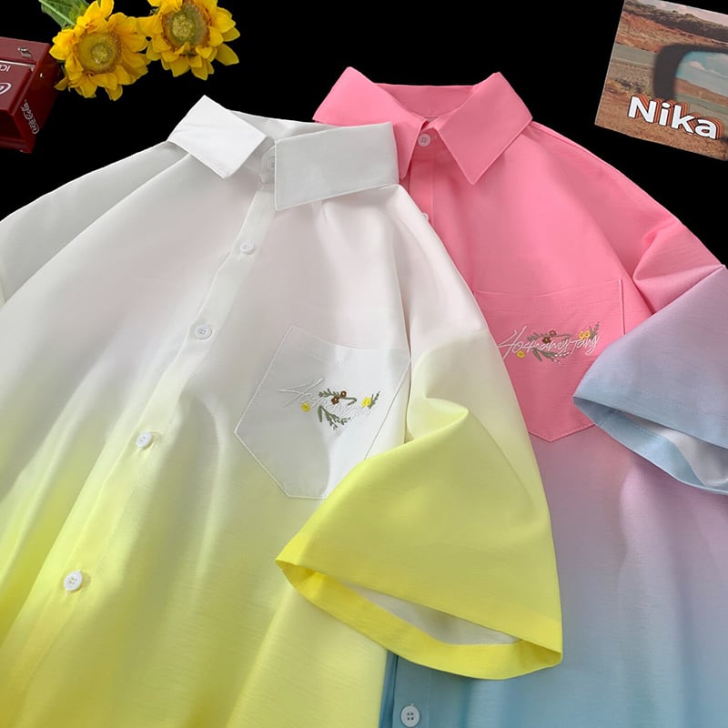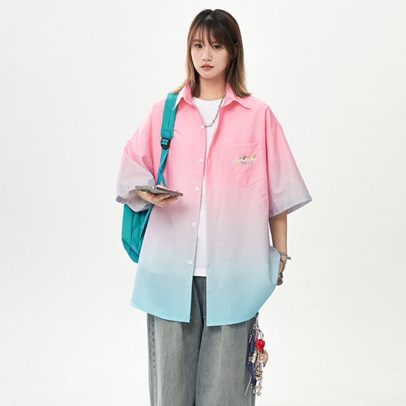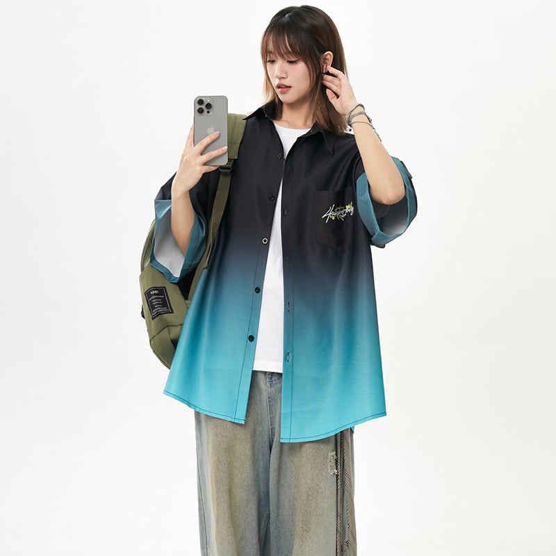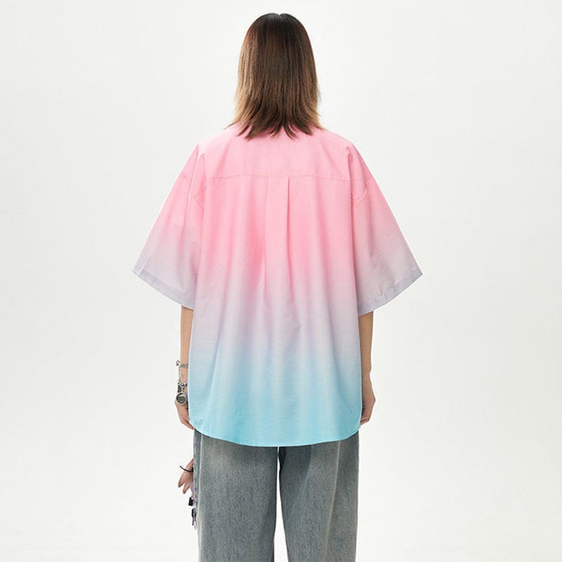 【藤伊曼シリーズ】★シャツ★ 3color トップス 半袖 ユニセックス メンズ グラデーション