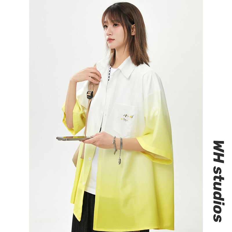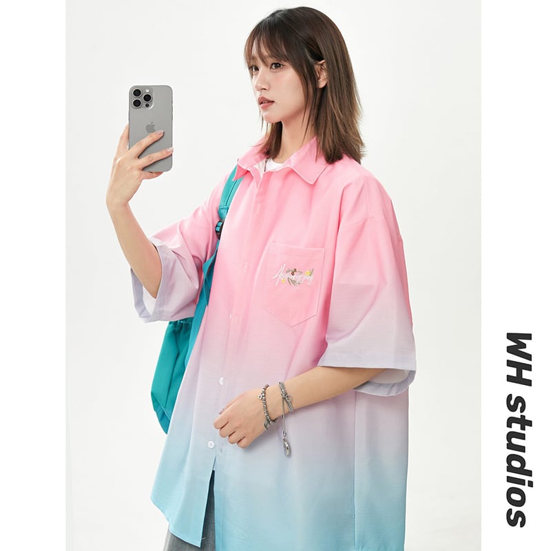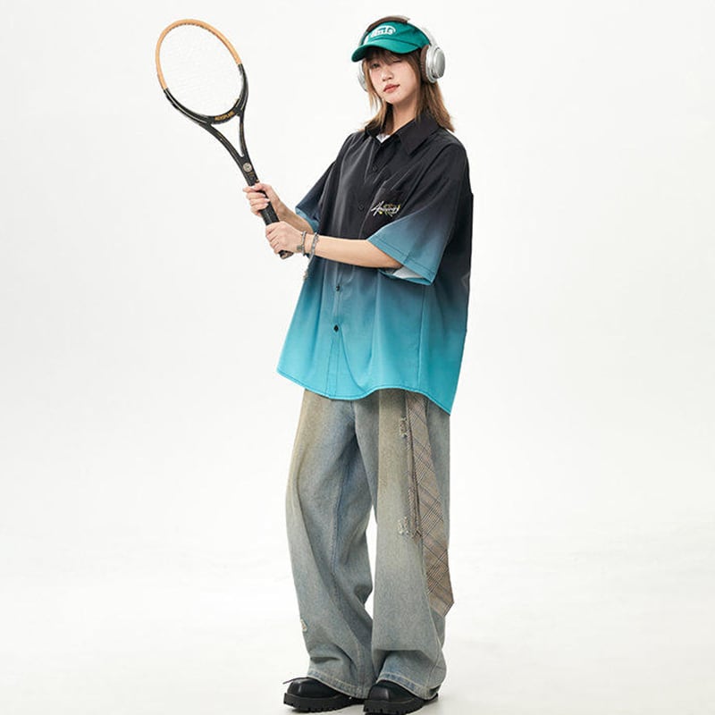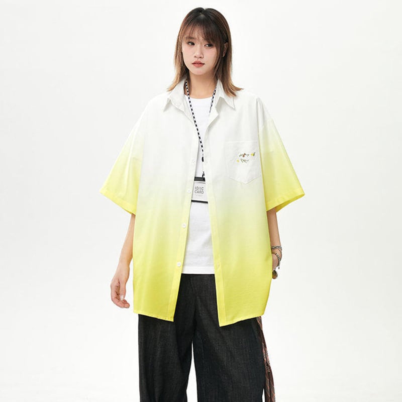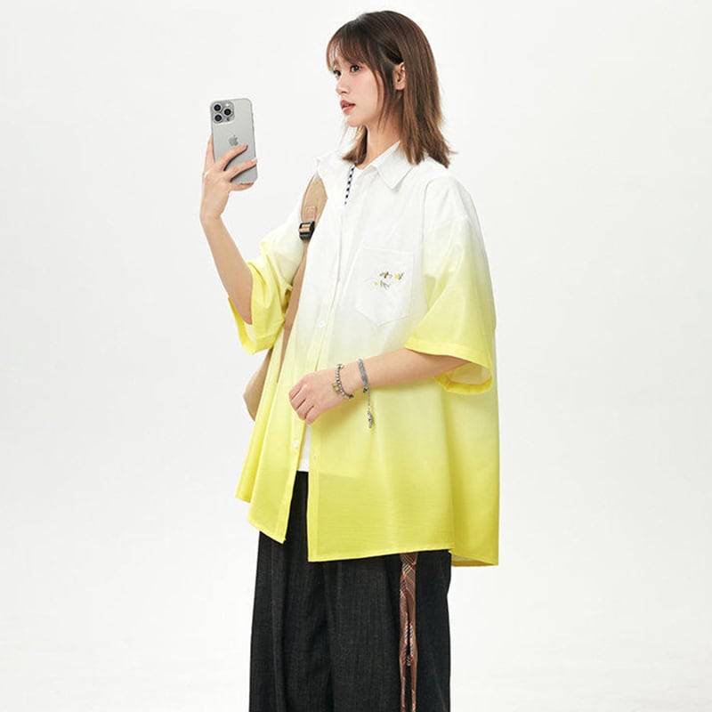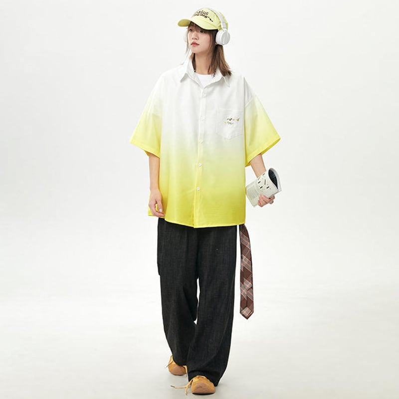 【藤伊曼シリーズ】★シャツ★ 3color トップス 半袖 ユニセックス メンズ グラデーション