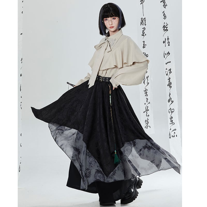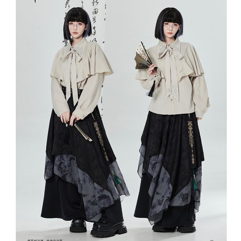 【卿棠---乾坤定序】★チャイナ風トップス★ リボン シャツ 長袖シャツ ユニセックス レディース