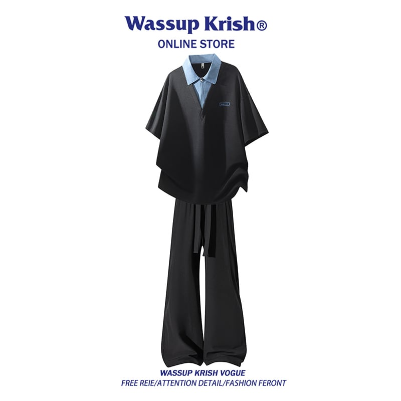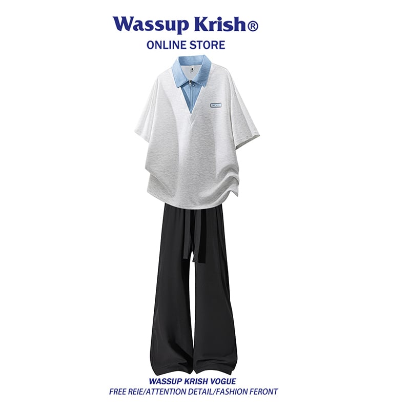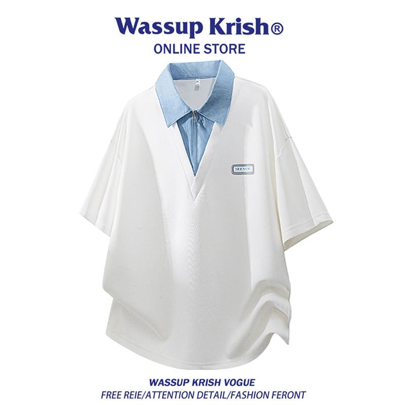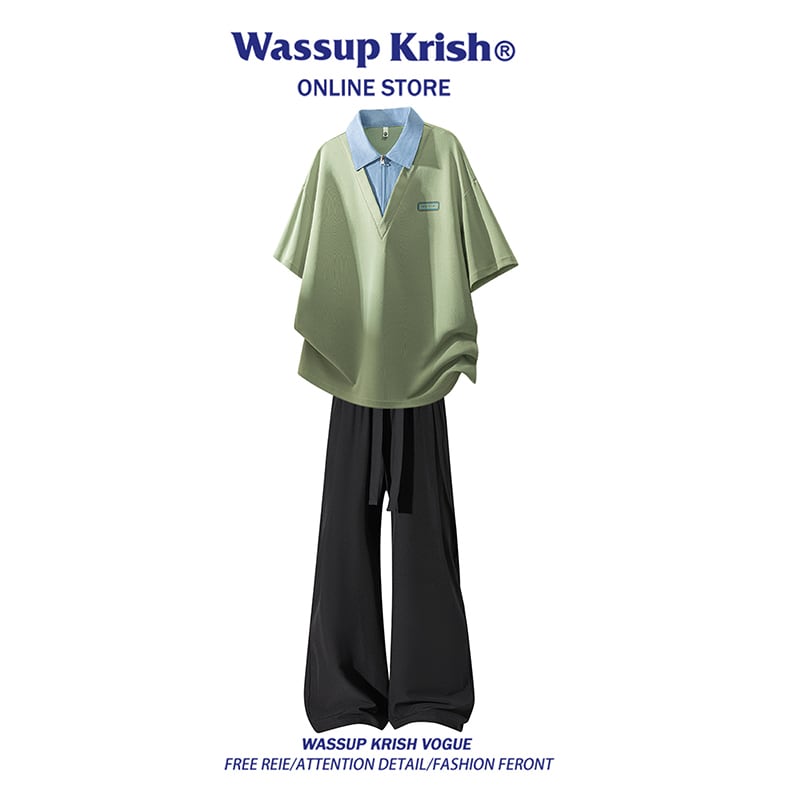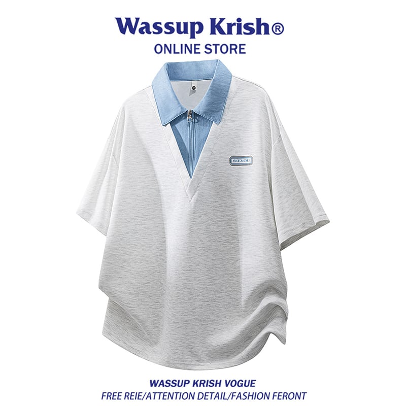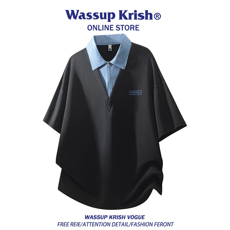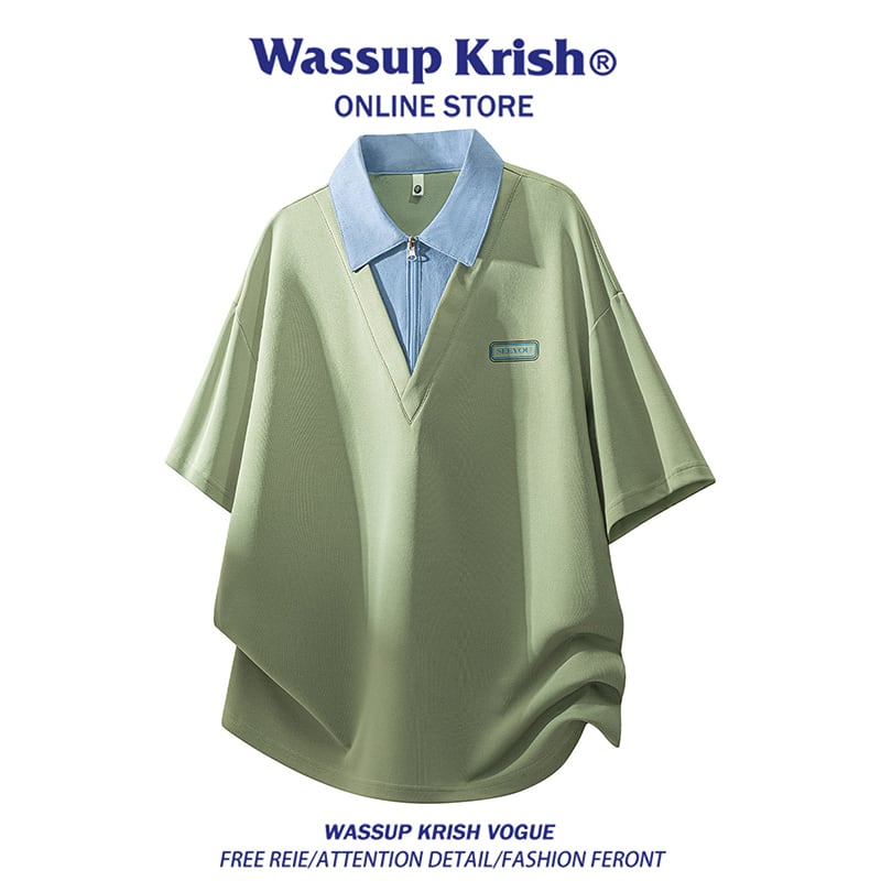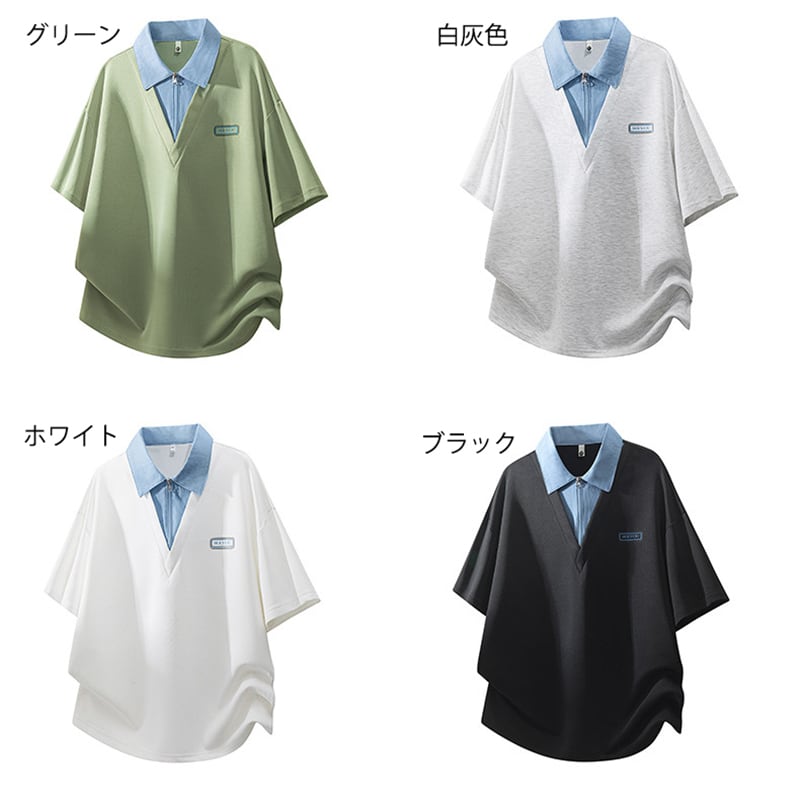 【WSシリーズ】★POLOシャツ★ 4color トップス 半袖 ユニセックス メンズ フェイクレイヤード 黒 白 緑 灰