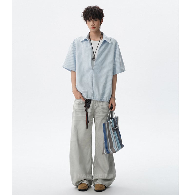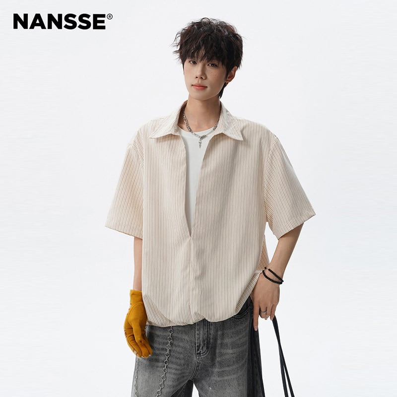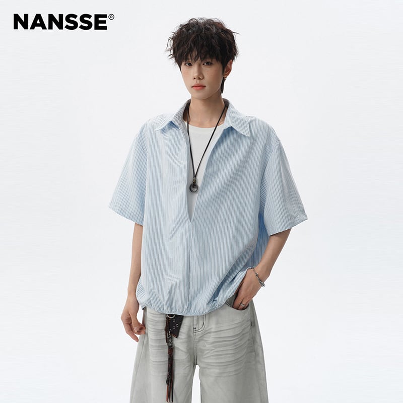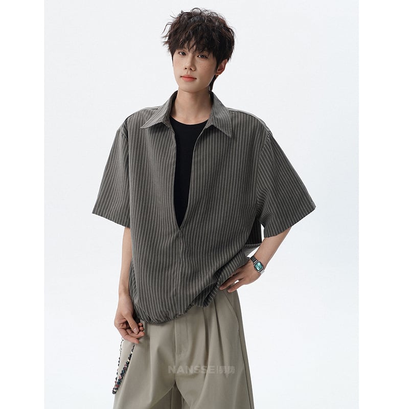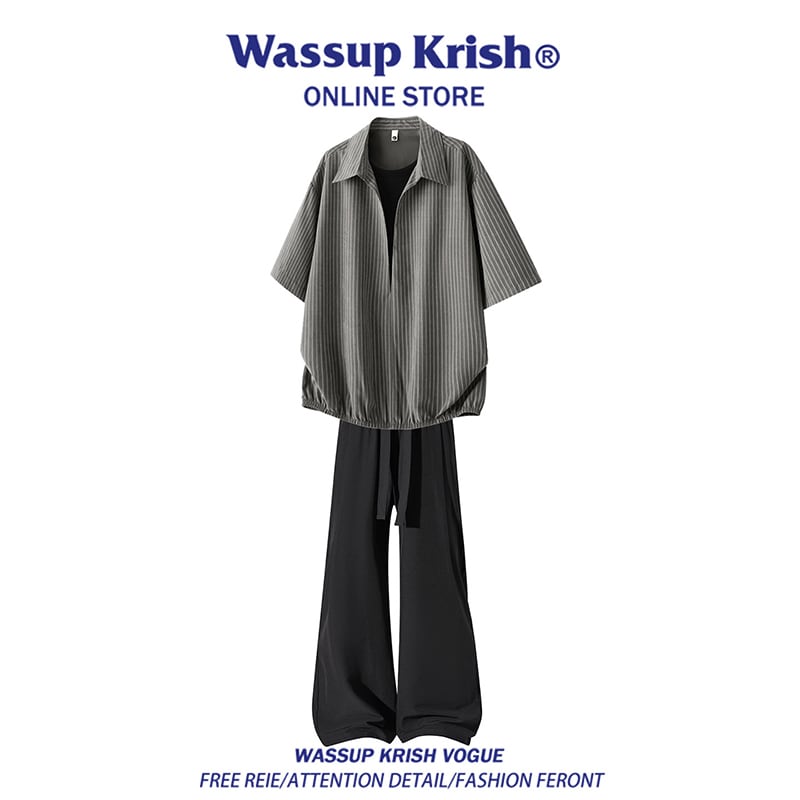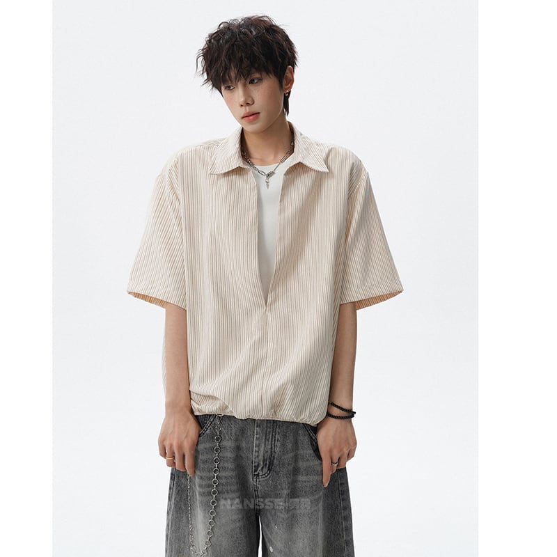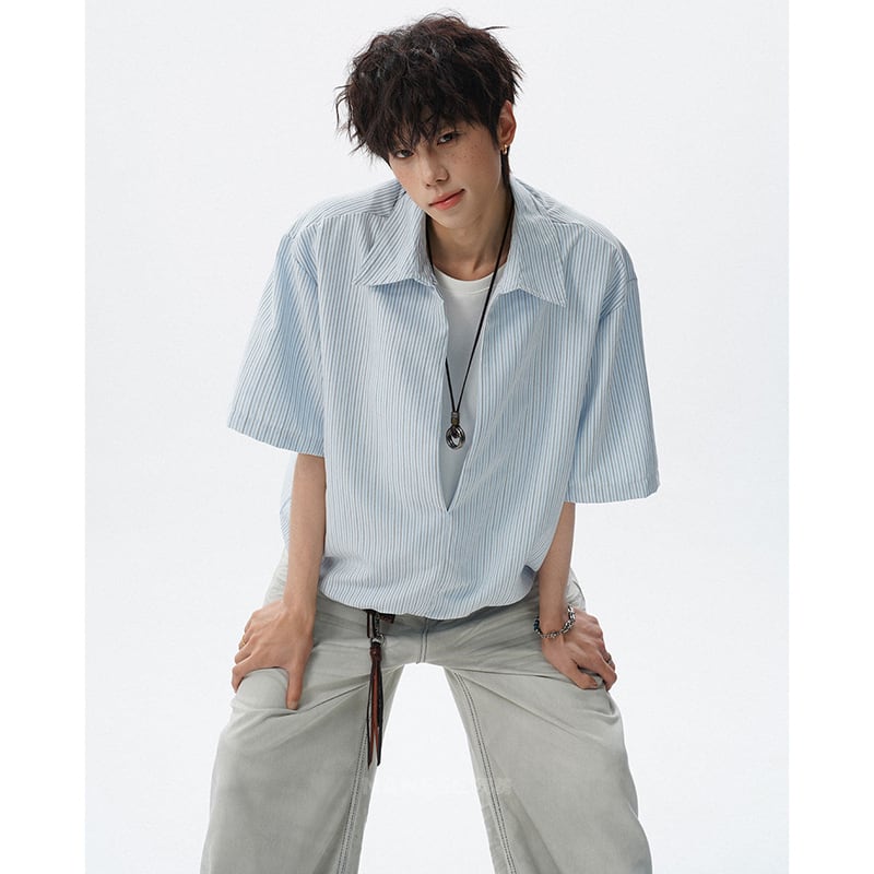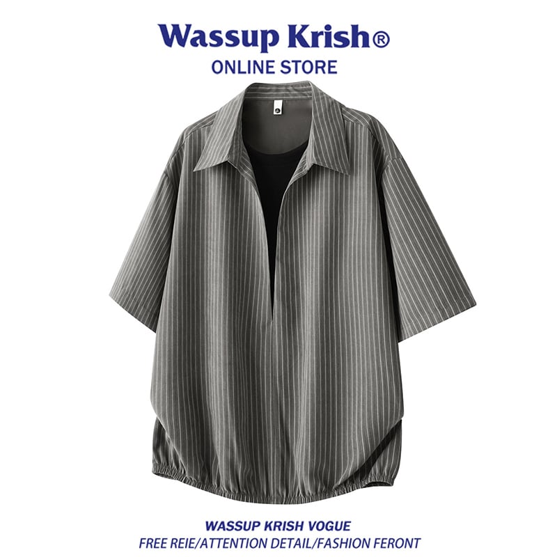 【WSシリーズ】★POLOシャツ★ 3color トップス 半袖 ユニセックス メンズ フェイクレイヤード 縦縞 縞模様