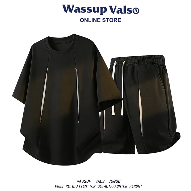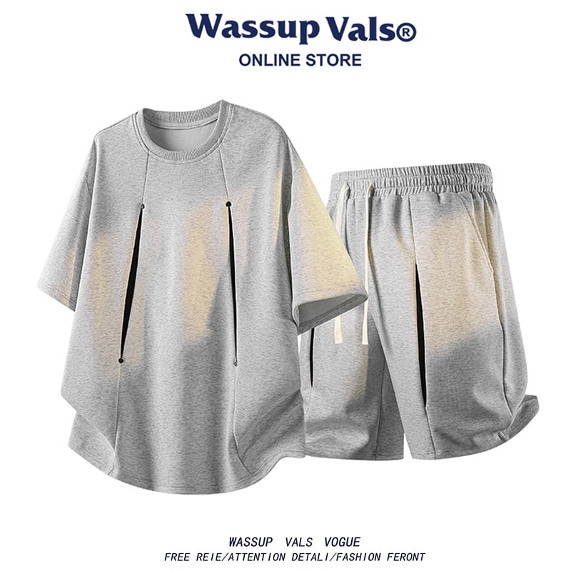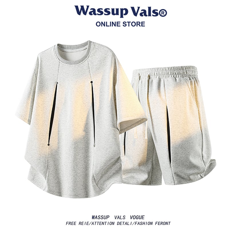 【WSシリーズ】★セットアップ 単品注文★ 3color ユニセックス トップスorズボン Tシャツ 短パン 大きいサイズ 黒 灰