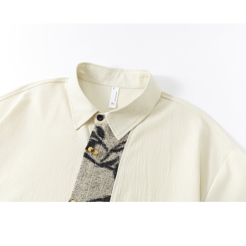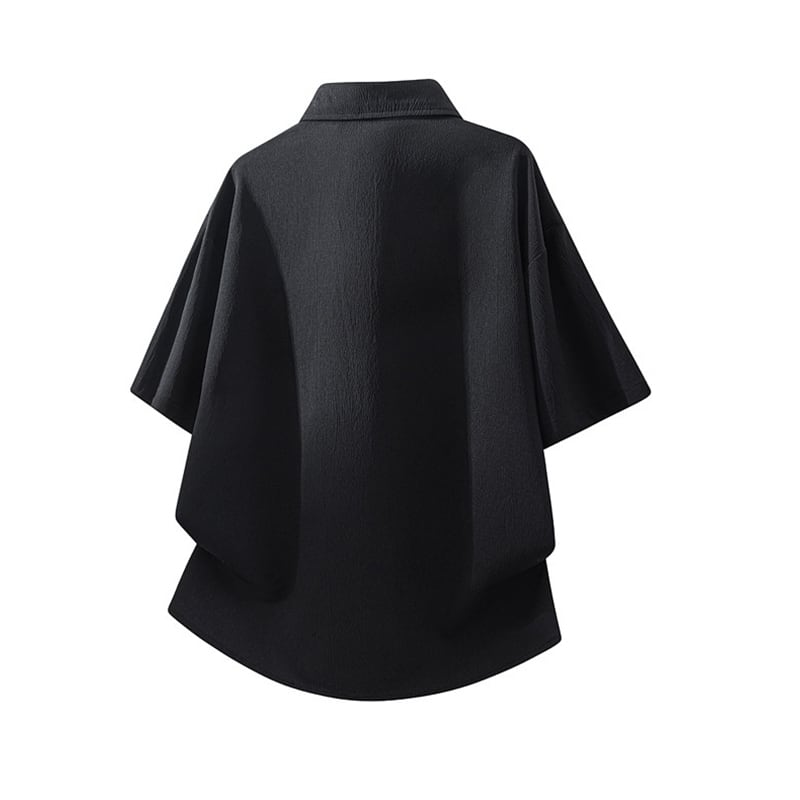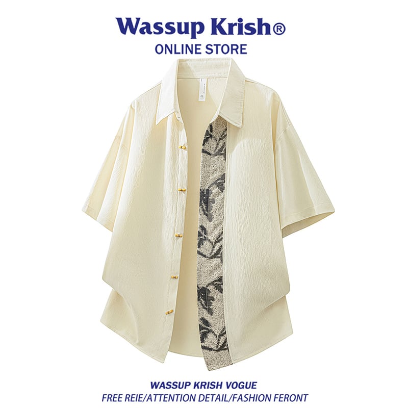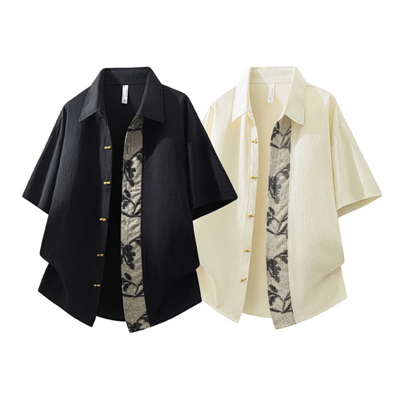 【WSシリーズ】★チャイナ風トップス★ ユニセックス 2color シャツ 花柄 半袖 切り替え 大きいサイズ
