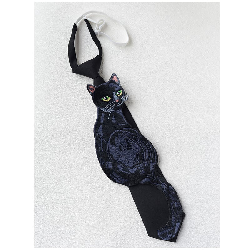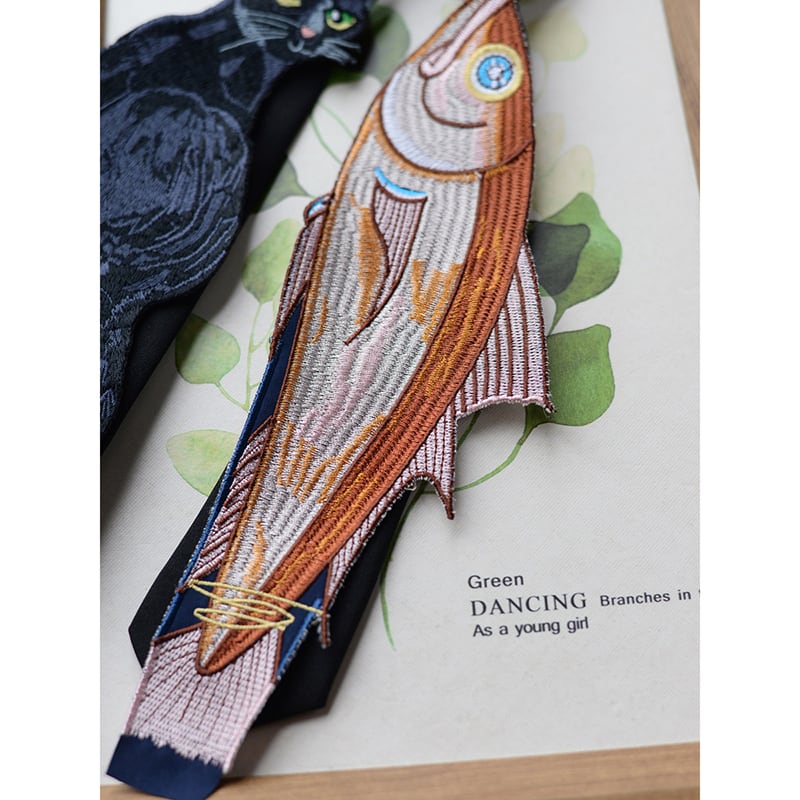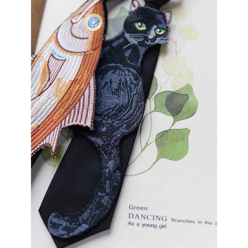 ❦ノットタイ刺繍で、今日はちょっと違う自分!【霖悅君シリーズ】★ネクタイ★ 2タイプ選択可能 小物 飾り物 アクセサリー 猫or魚