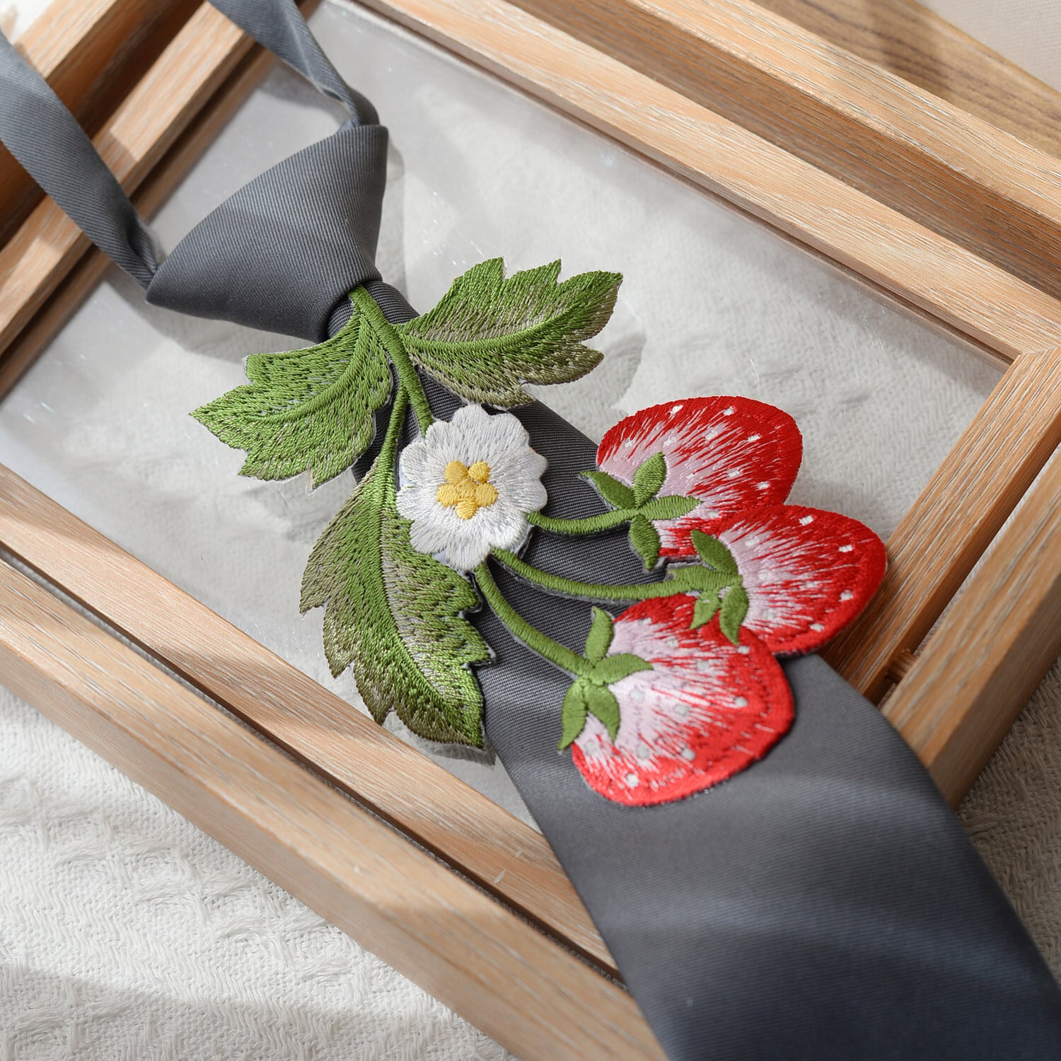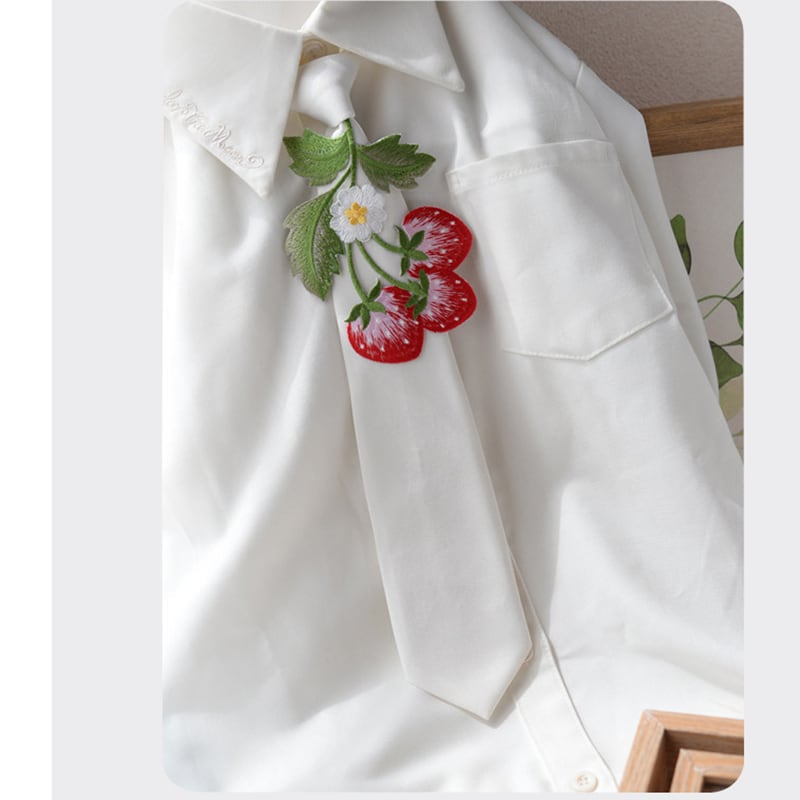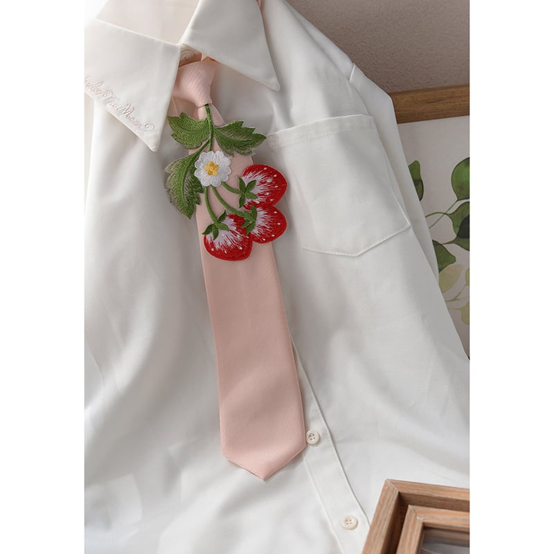 ❦甘すぎない苺刺繍ネクタイ!【霖悅君シリーズ】★ネクタイ★ 13color選択可能 小物 飾り物 アクセサリー
