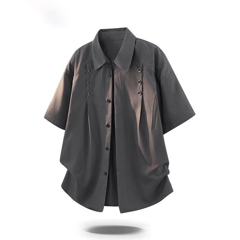 【WSシリーズ】★シャツ★ ユニセックス 3color カジュアル レトロ ボタンデザイン 半袖シャツ