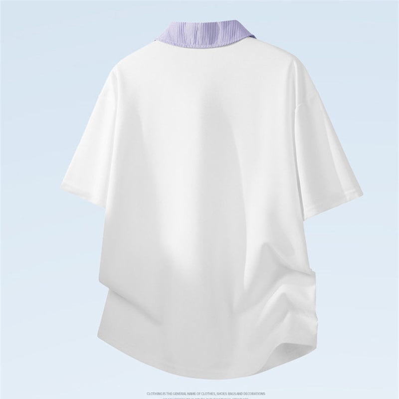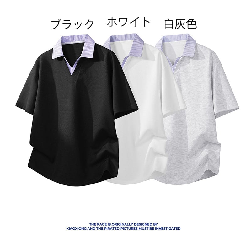 【WSシリーズ】★POLOシャツ★ 3color トップス 半袖 ユニセックス メンズ 配色 縦横 縞模様 白 黒