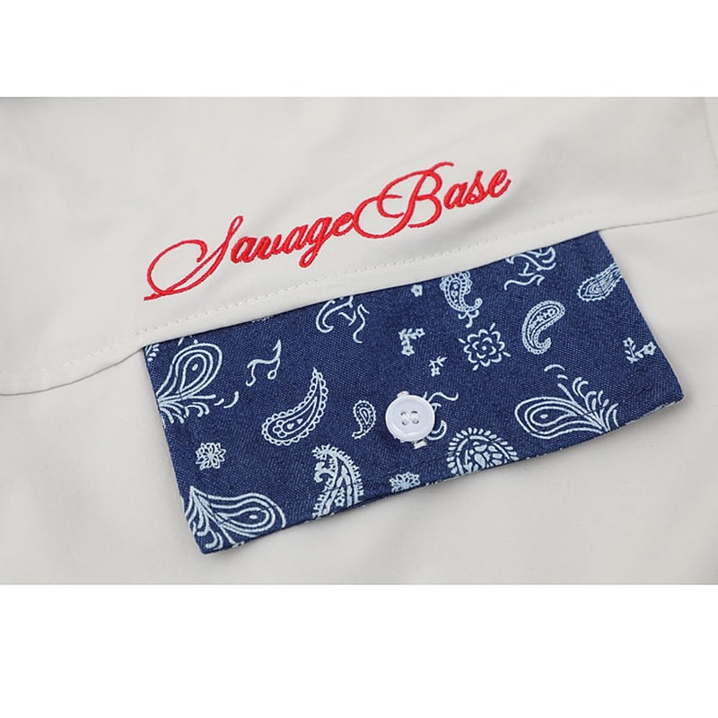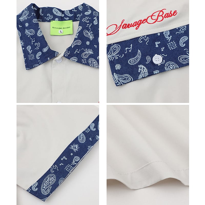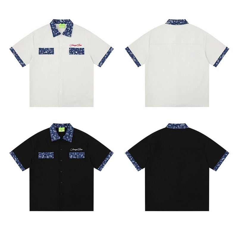 【WSシリーズ】★シャツ★ 2color トップス 半袖 ユニセックス メンズ ペイズリー柄 切り替え 黒 白