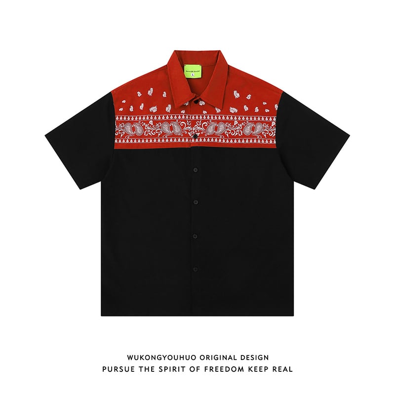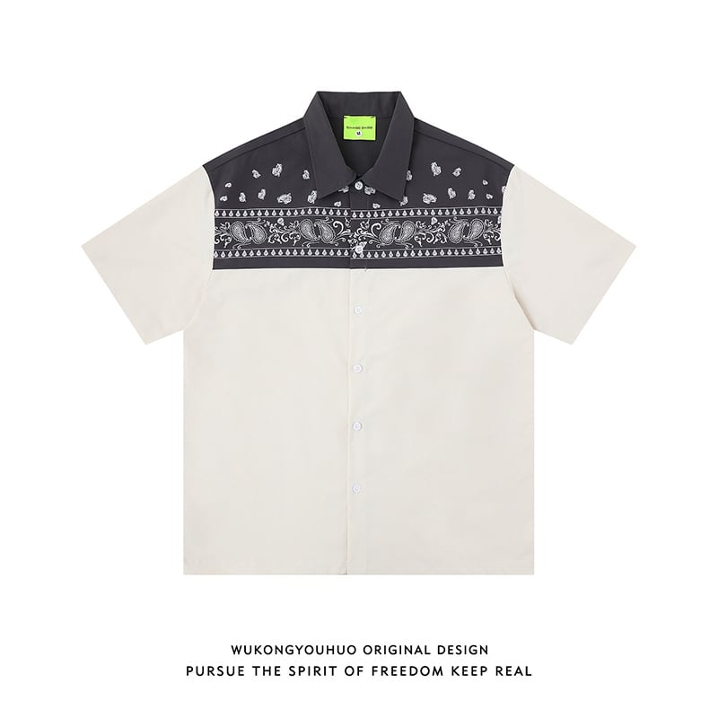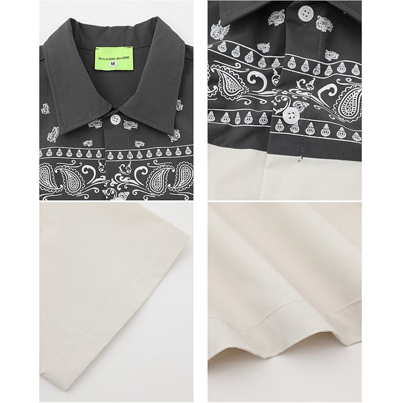 【WSシリーズ】★シャツ★ 2color トップス 半袖 ユニセックス メンズ ペイズリー柄 切り替え 配色