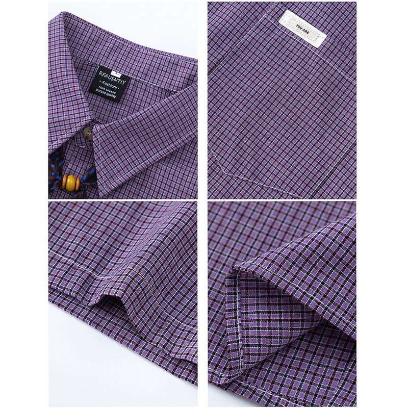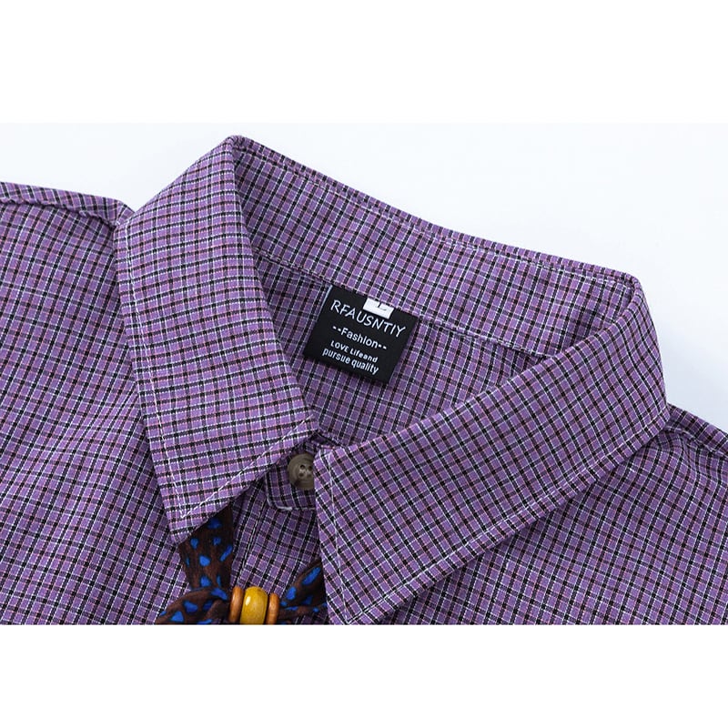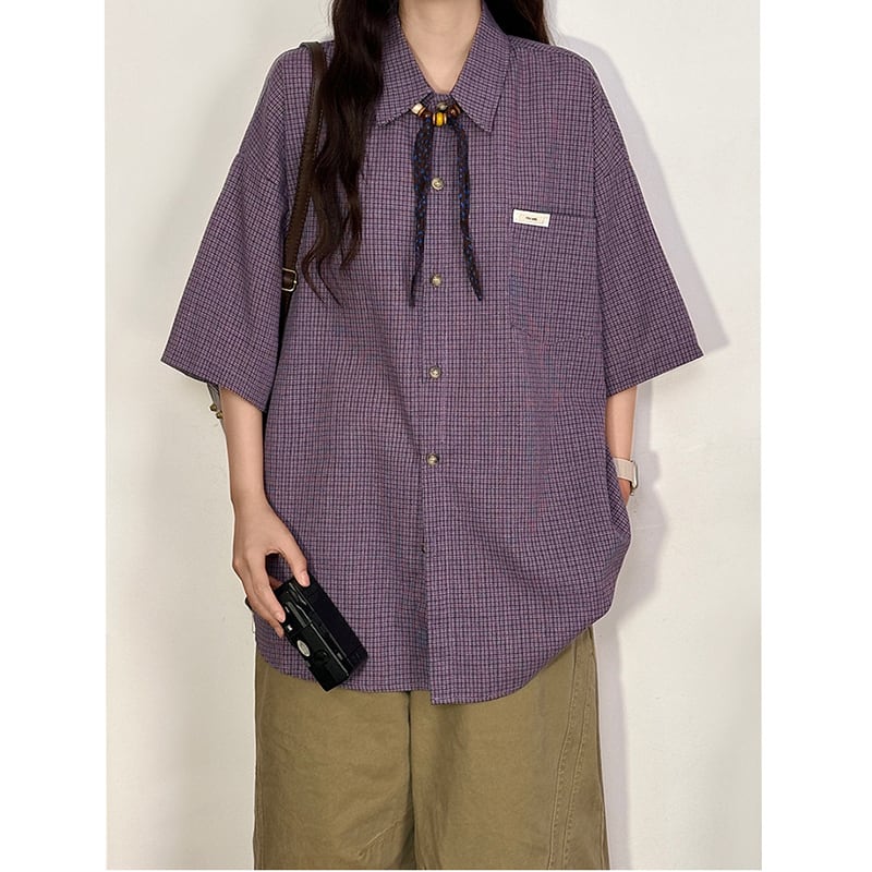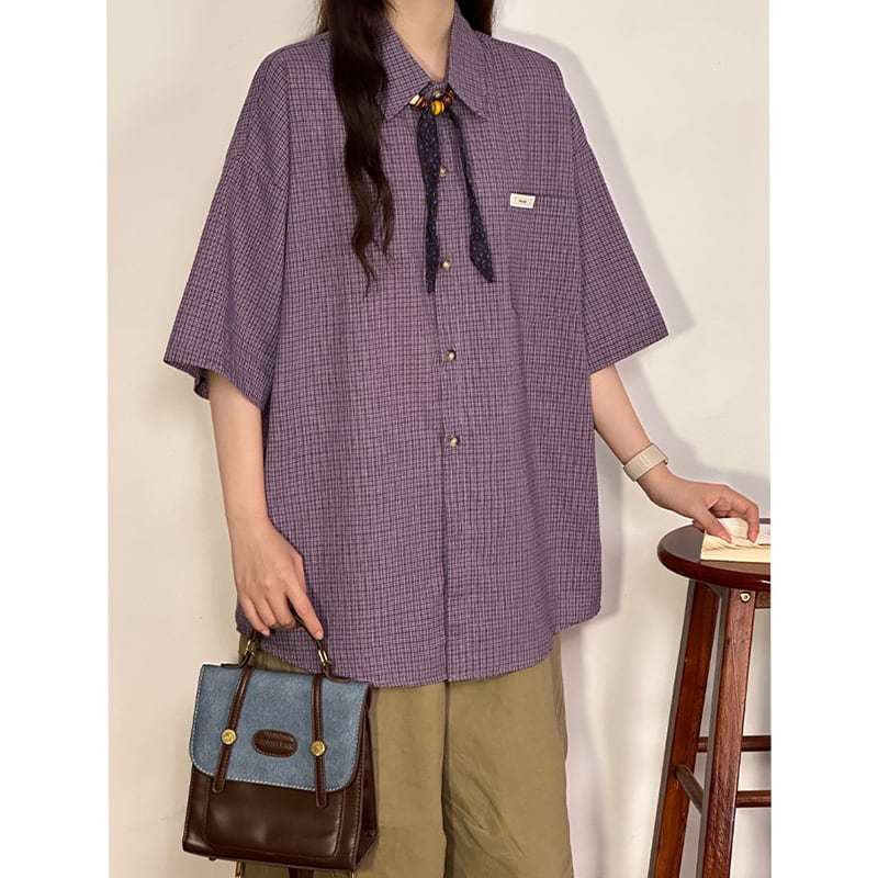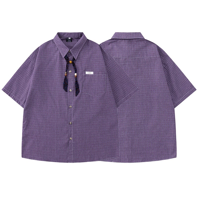 【UATONLINEシリーズ】★シャツ★ トップス 半袖シャツ ユニセックス チェック柄 半袖 パープル 紫