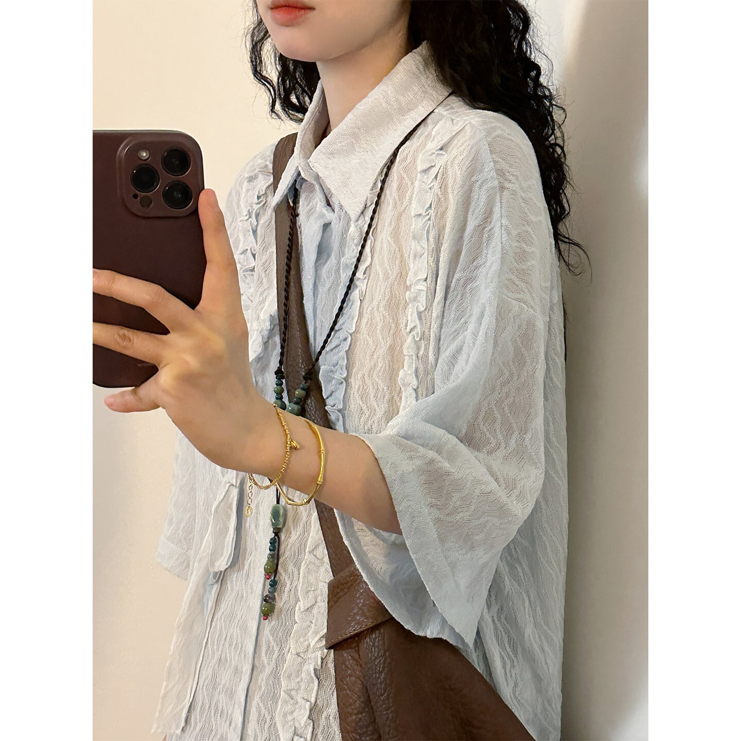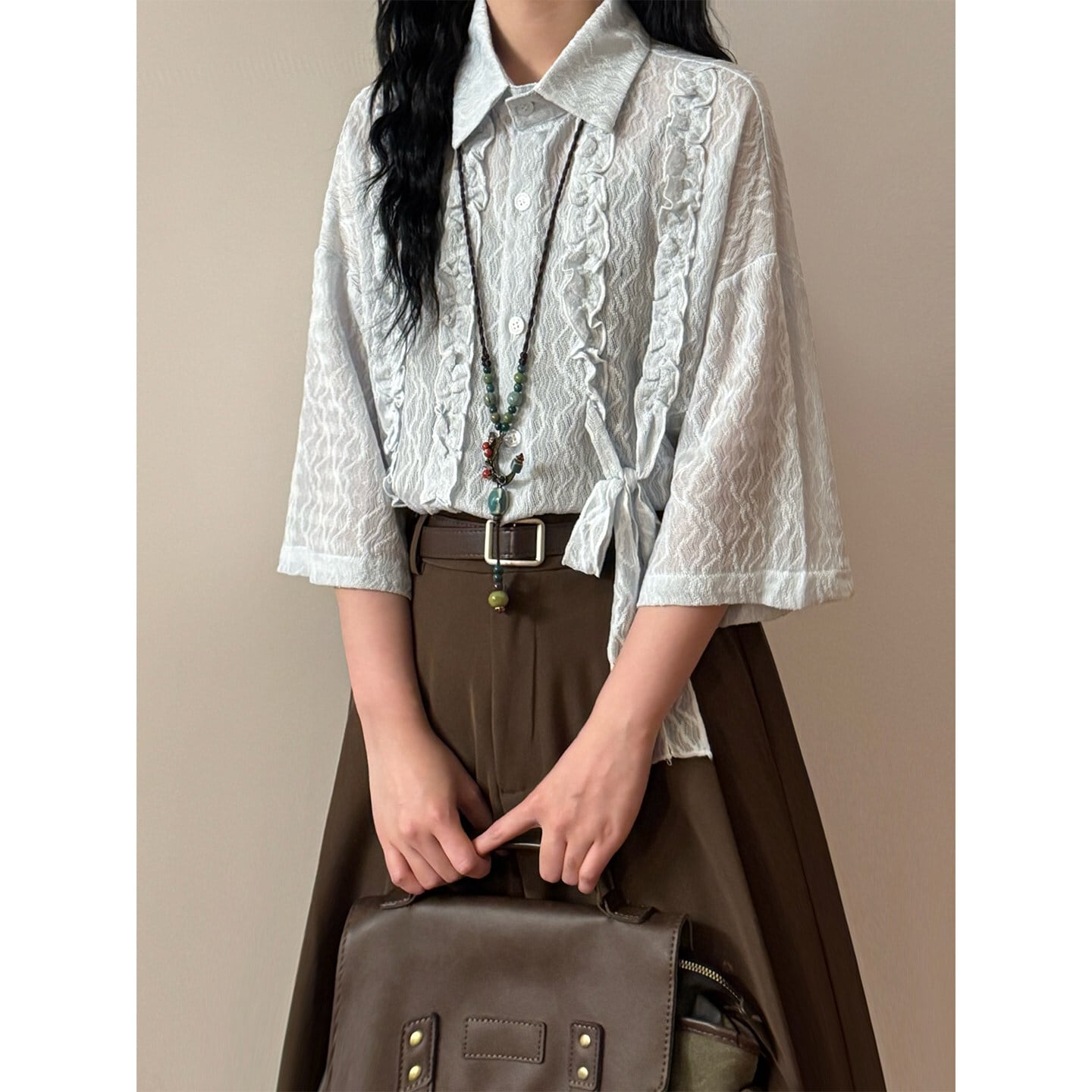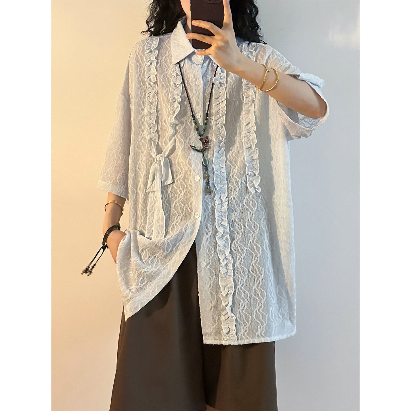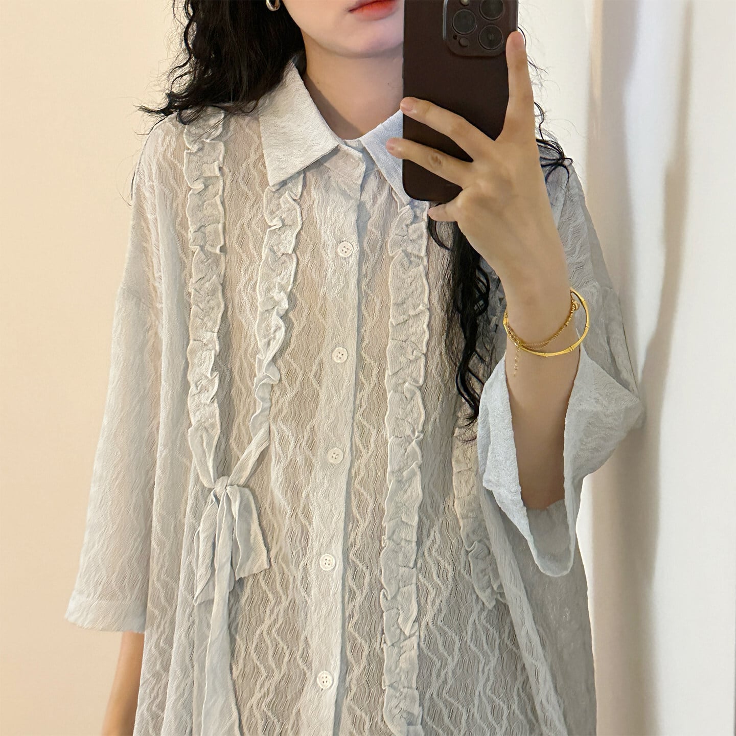 【UATONLINEシリーズ】★シャツ★ トップス 半袖シャツ ユニセックス 切り替え 可愛い ライトブルー 夏服