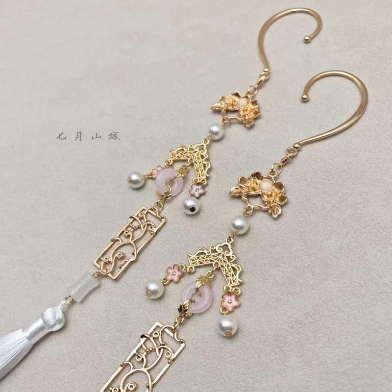 【七月シリーズ】★チャイナ風耳飾り★ イヤーフック 1個 片方 アクセサリー レディース ロング丈
