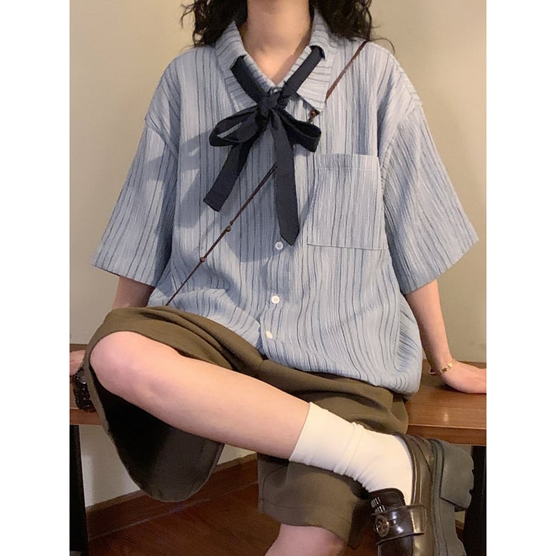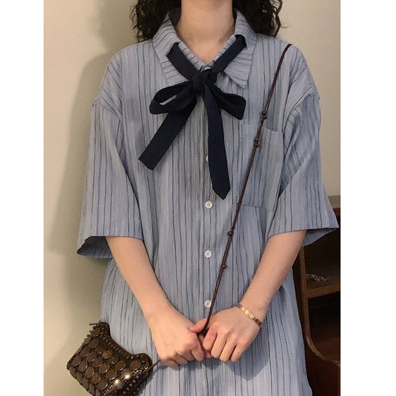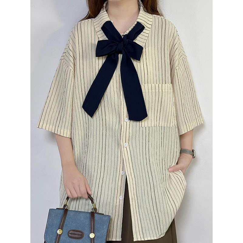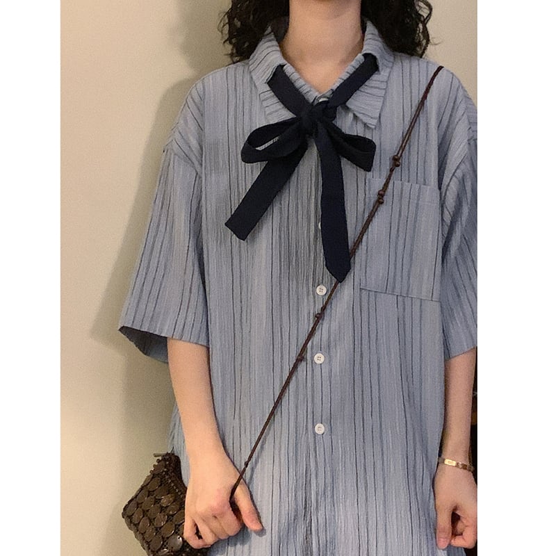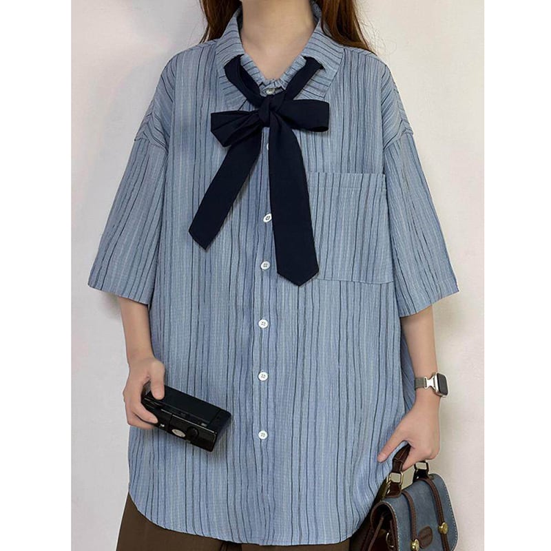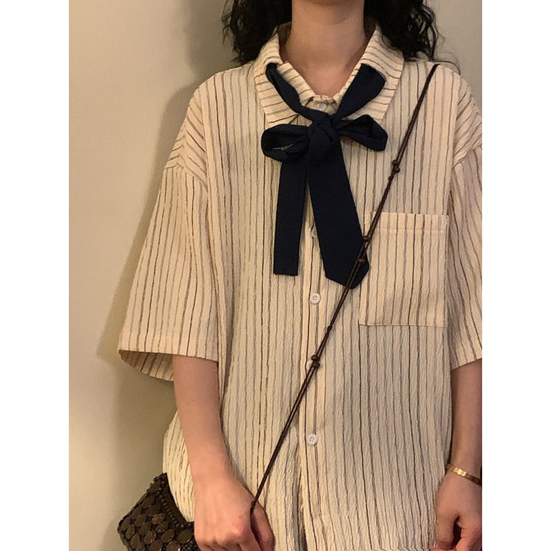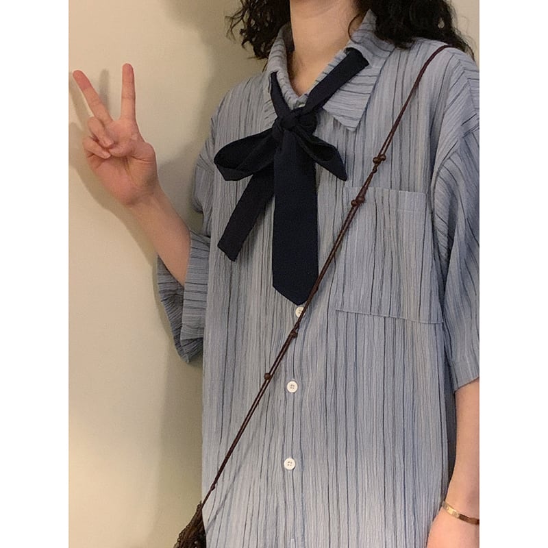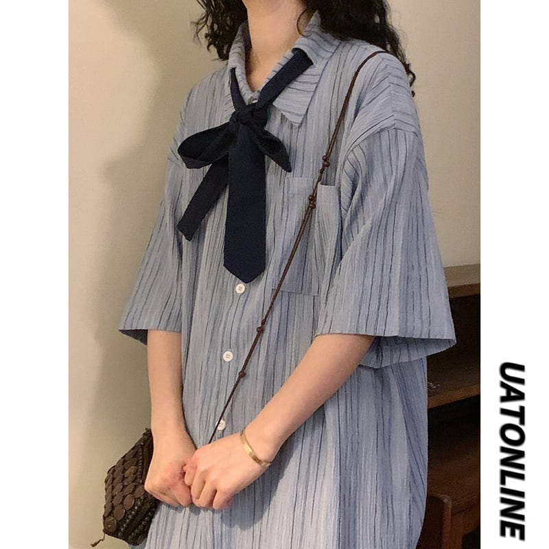 【UATONLINEシリーズ】★シャツ★ 2color ネクタイ付き トップス 半袖シャツ トップス 男女兼用 メンズ 縦縞 縞模様