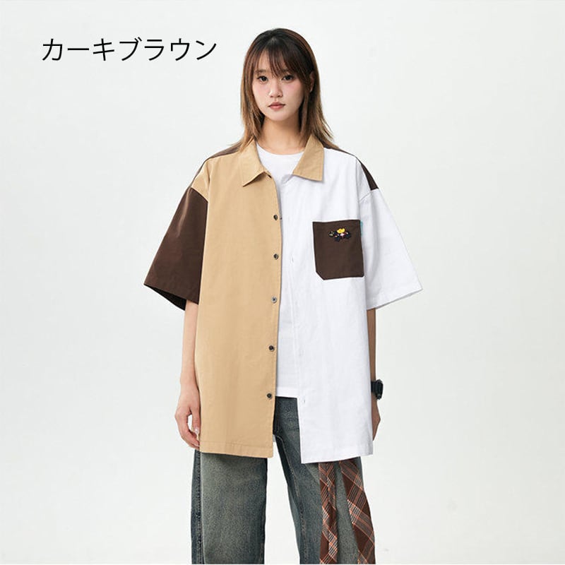 【藤伊曼シリーズ】★シャツ★ 3color トップス 半袖 ユニセックス メンズ 切り替え 配色 おしゃれ 彩り 可愛い