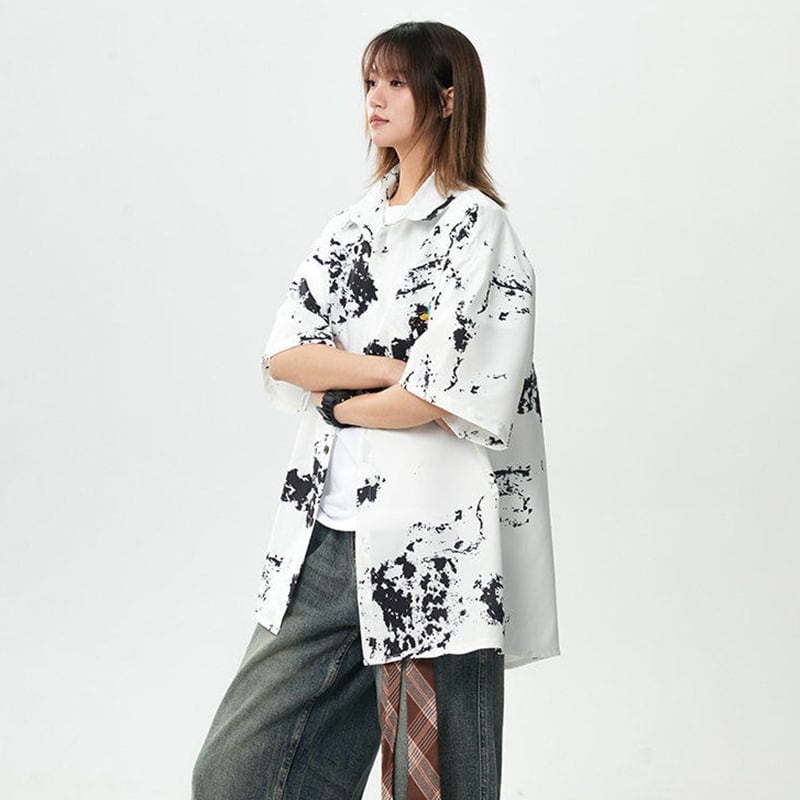 【藤伊曼シリーズ】★シャツ★ 3color トップス 半袖 ユニセックス メンズ 絞り染め 可愛い 夏服 プリント