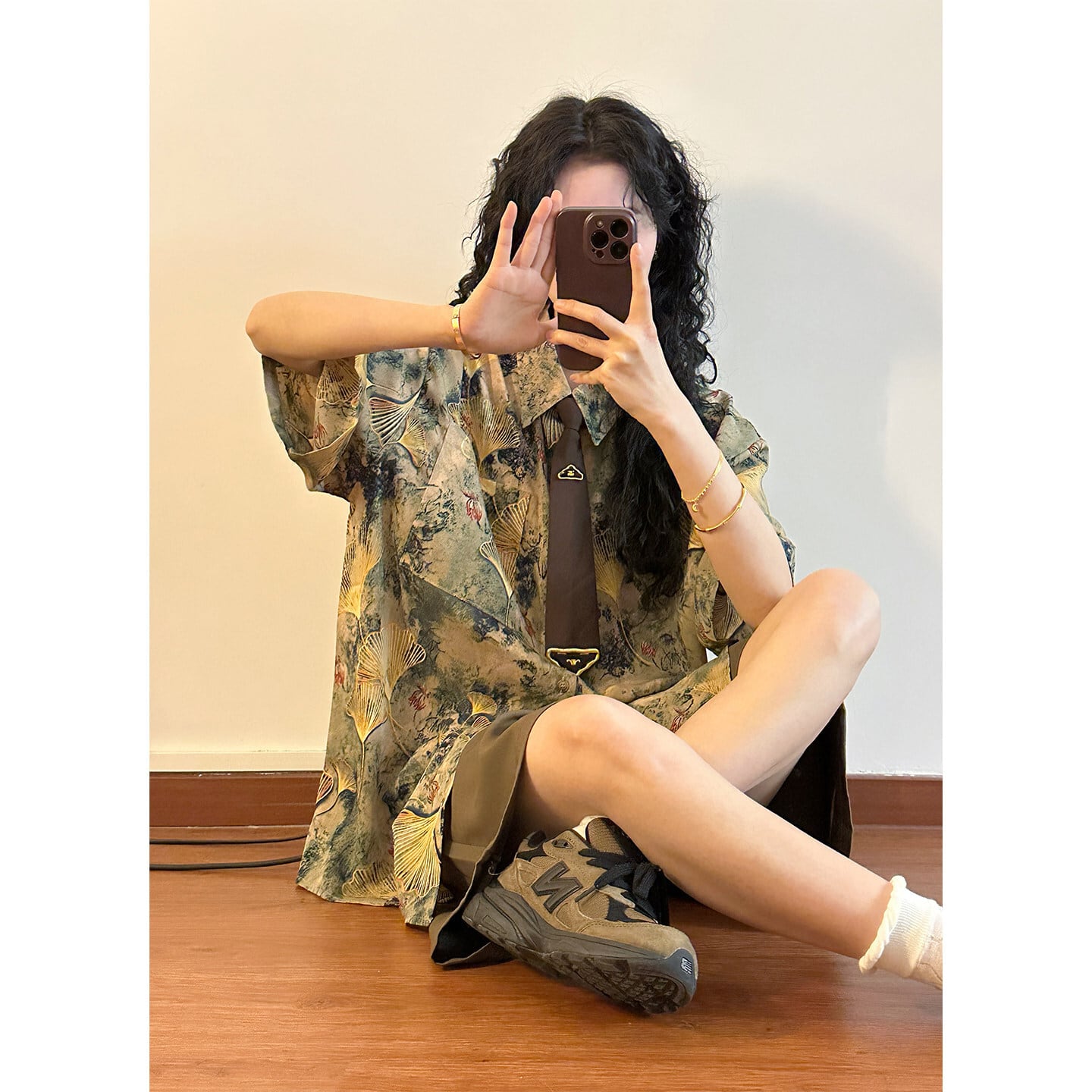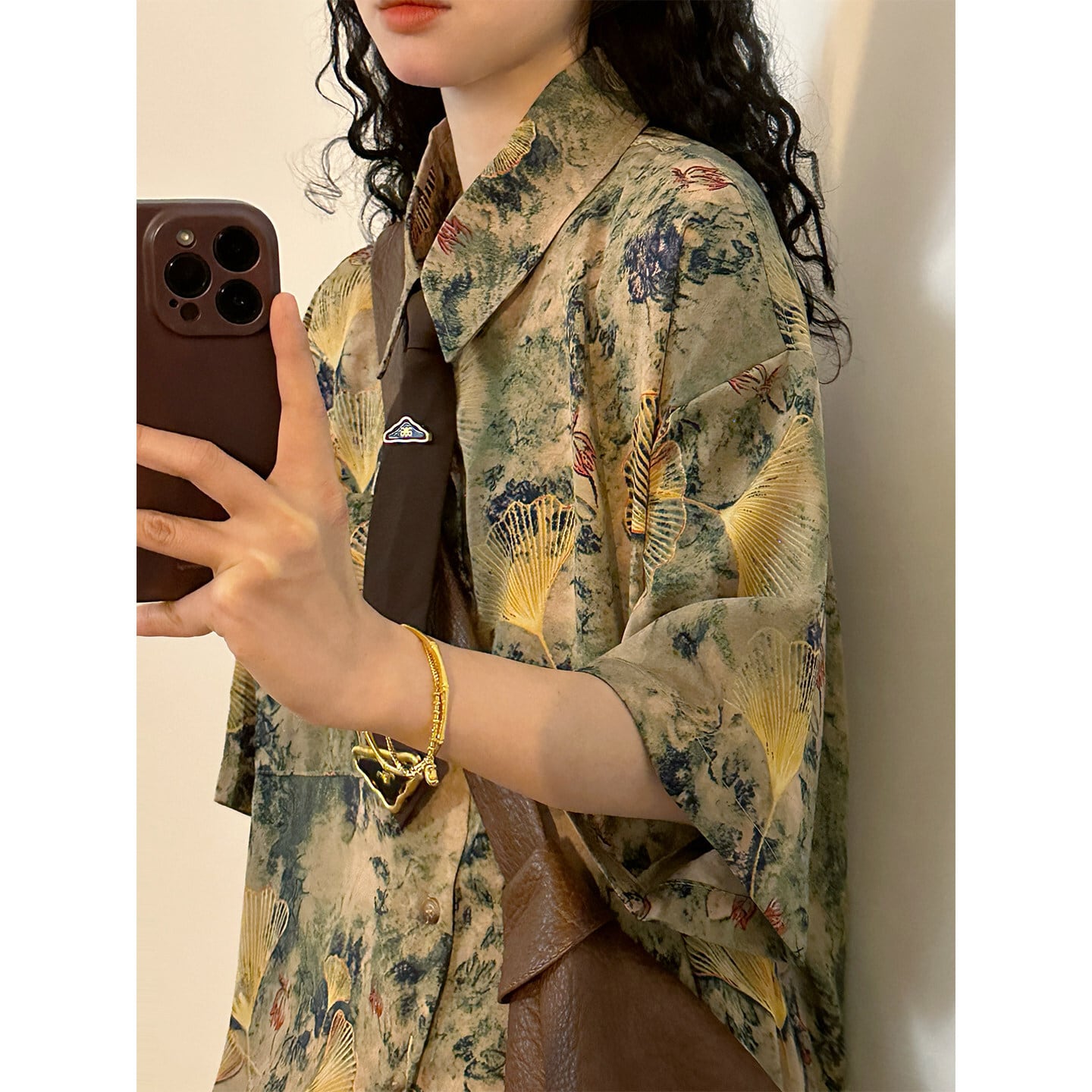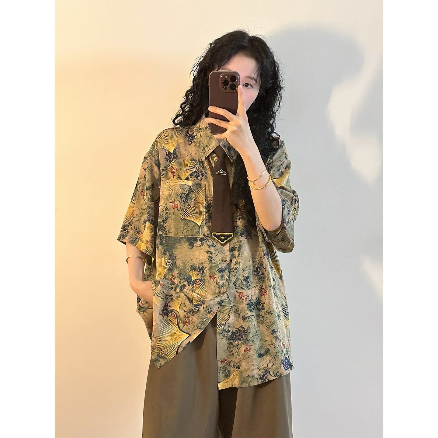 【UATONLINEシリーズ】★チャイナ風トップス★ シャツ ユニセックス レトロ 半袖 花柄 彩り ネクタイ付き プリント 夏服 可愛い