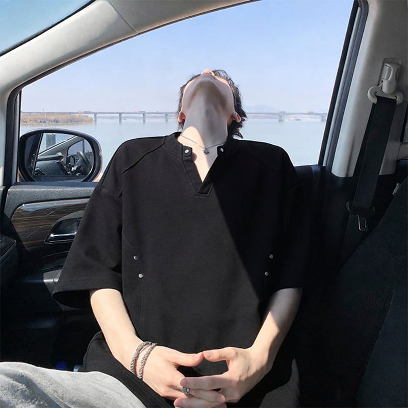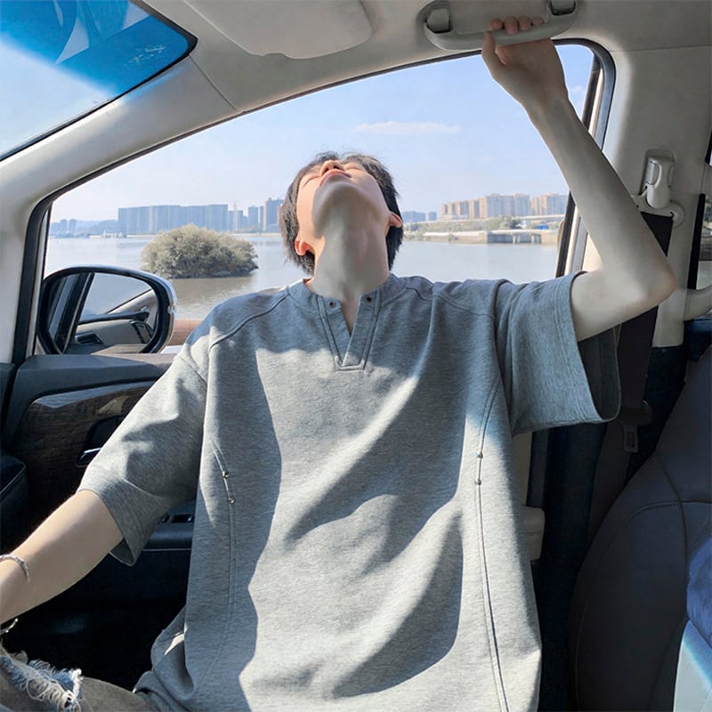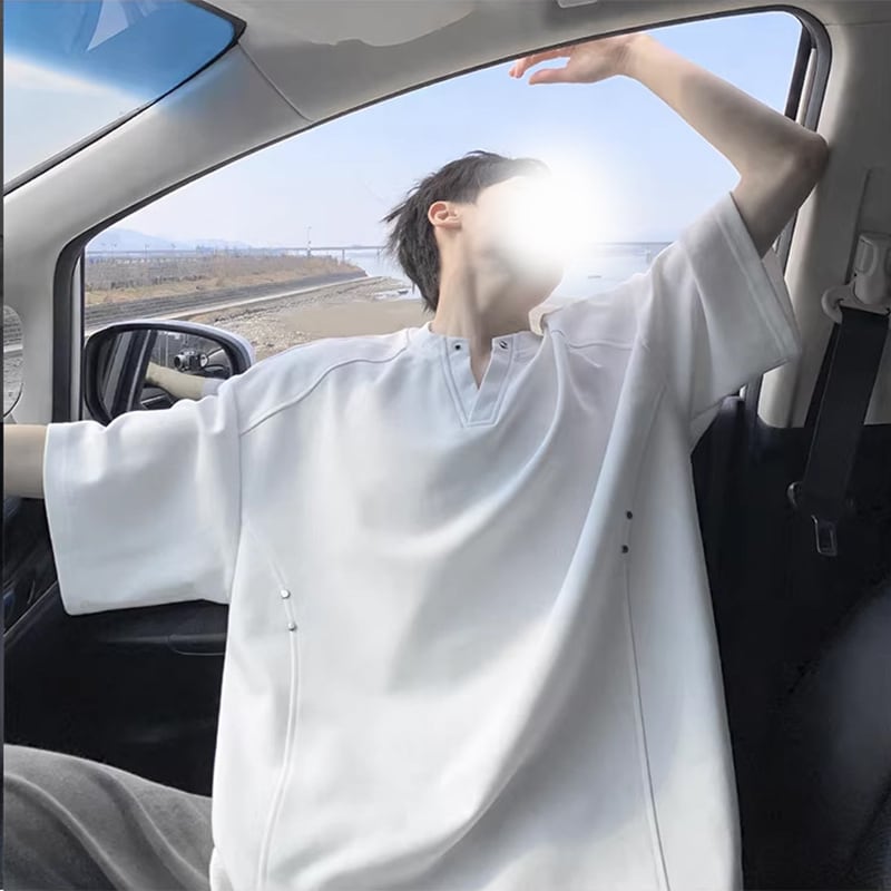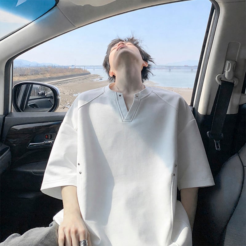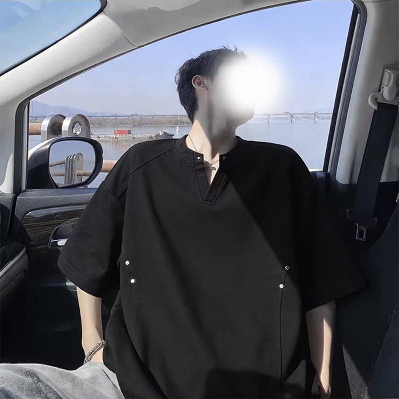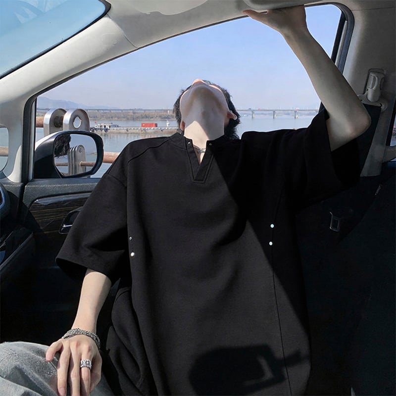 【KADISHOUシリーズ】★Tシャツ★ 3color ユニセックス Vネック シンプル トップス メンズ 大きいサイズ 黒 白 灰 大きいサイズ Vネック シンプル