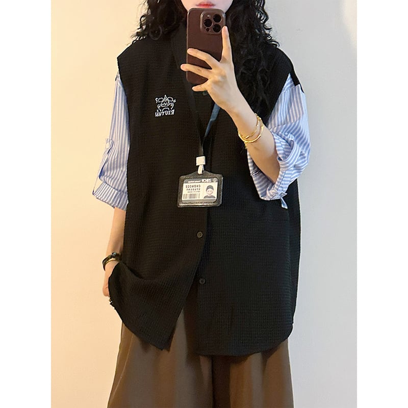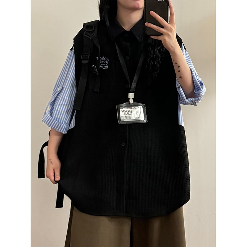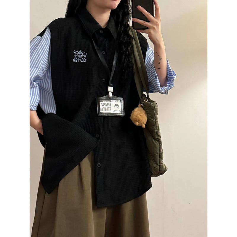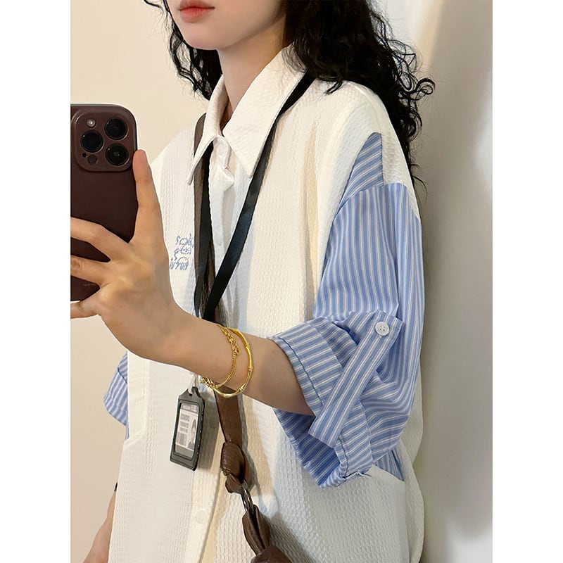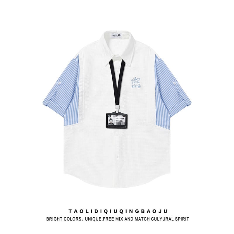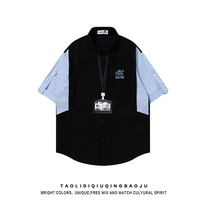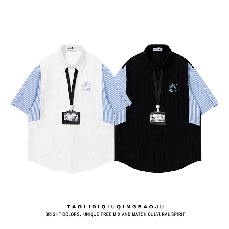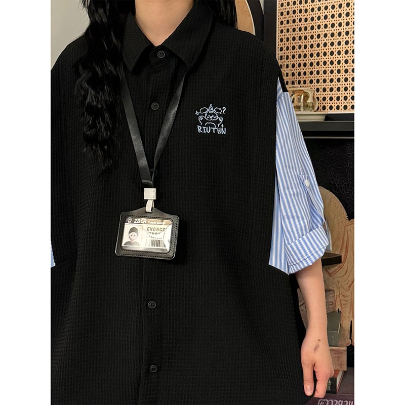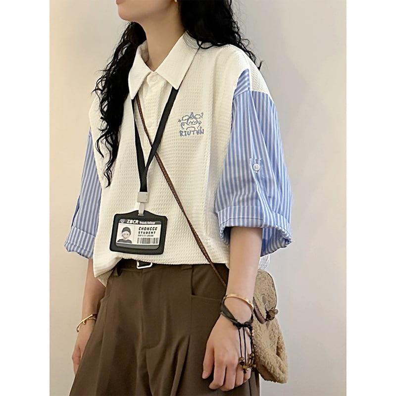 【UATONLINEシリーズ】★POLOシャツ★ 2color ユニセックス トップス レトロ 半袖 縦縞 縞模様 フェイクレイヤード
