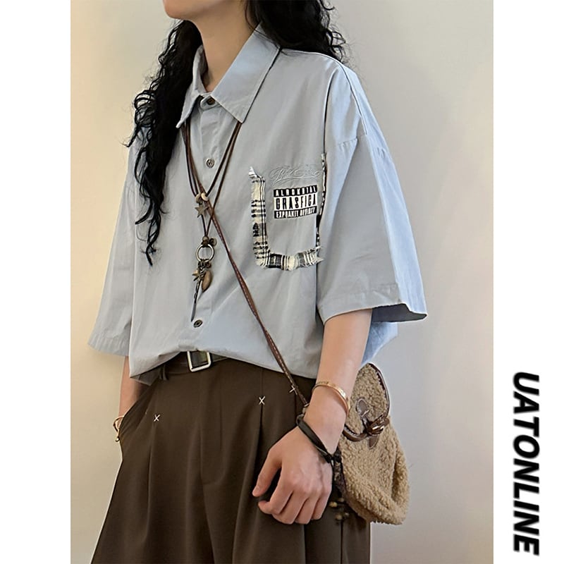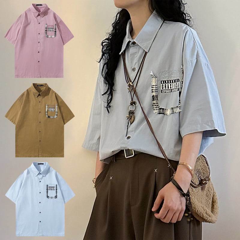 【UATONLINEシリーズ】★シャツ★ 3color トップス カジュアル ユニセックス コットン シンプル 半袖