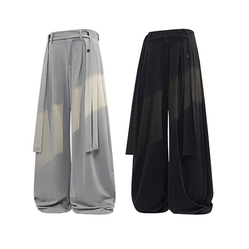 【WSシリーズ】★ズボン★ 2color ボトムス ユニセックス カジュアルパンツ メンズ ベルトデザイン 黒 灰