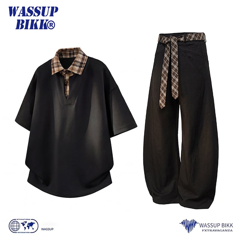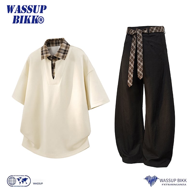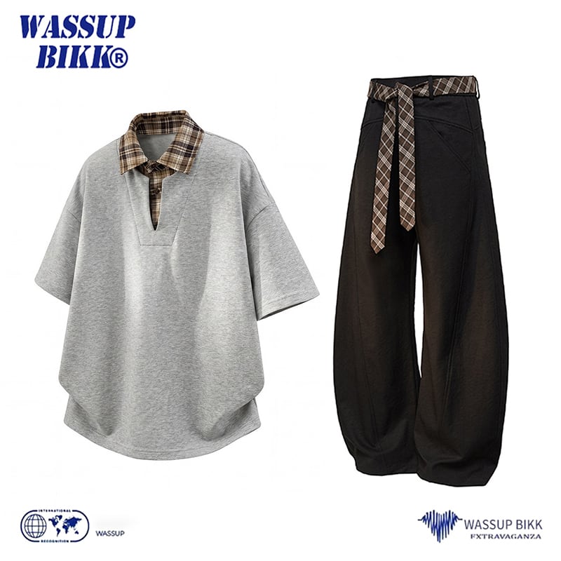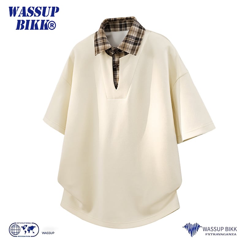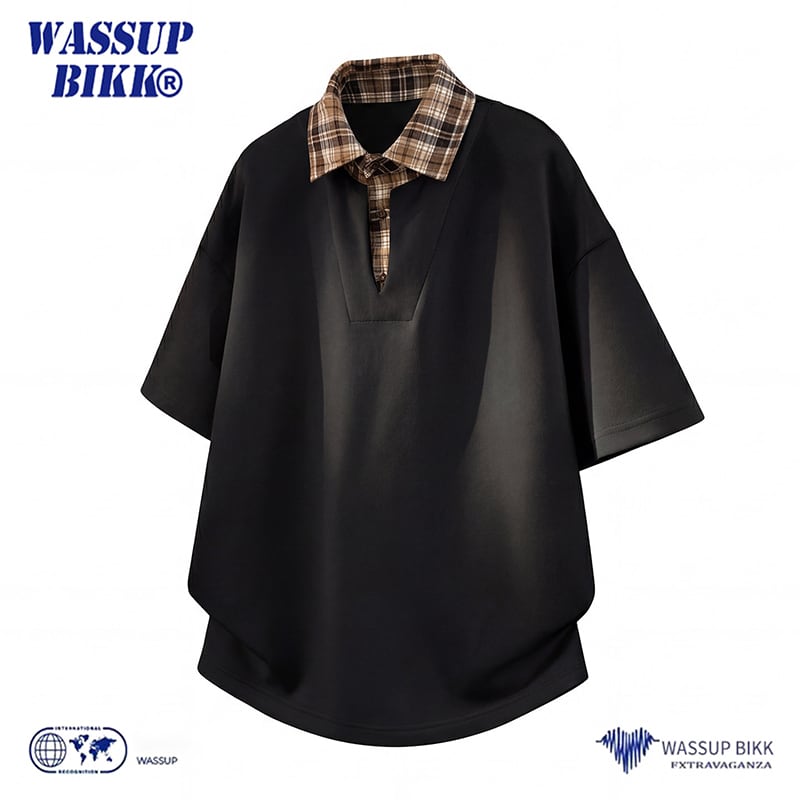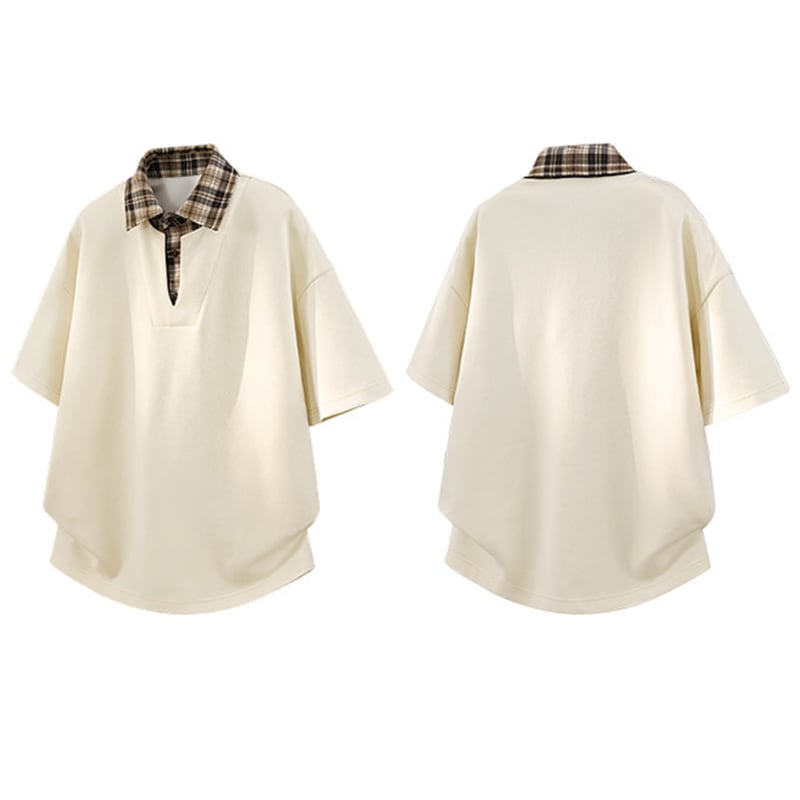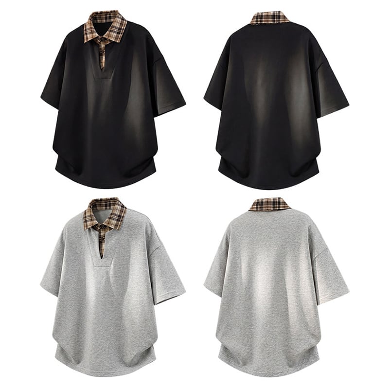 ♥半袖チェック柄切り替えPOLO!【WSシリーズ】★POLOシャツ★ 3color ユニセックス トップス 半袖 チェック柄