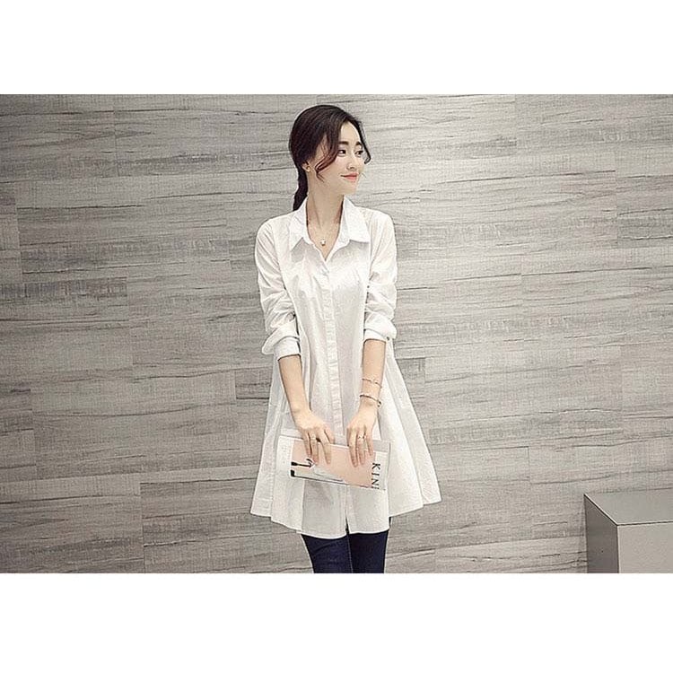 カジュアル チュニック 折襟 長袖 シャツワンピース レース レディース ファション ゆったり オフィス トップス