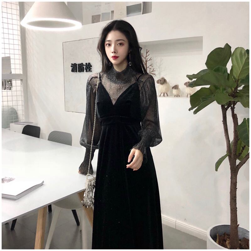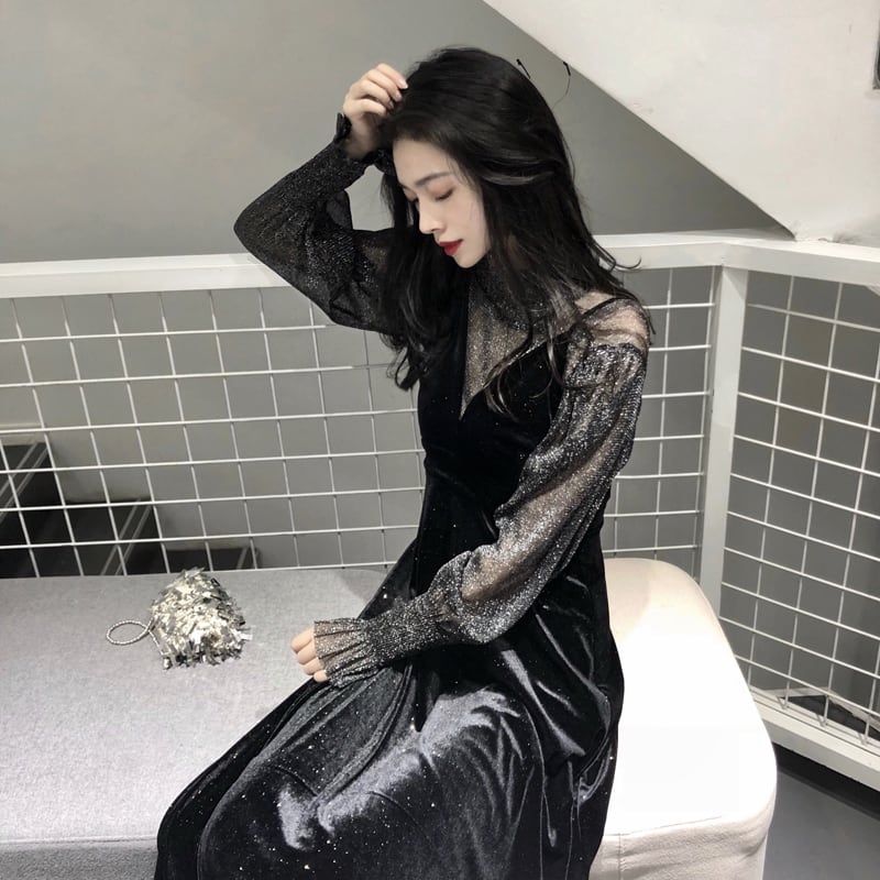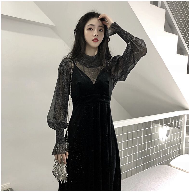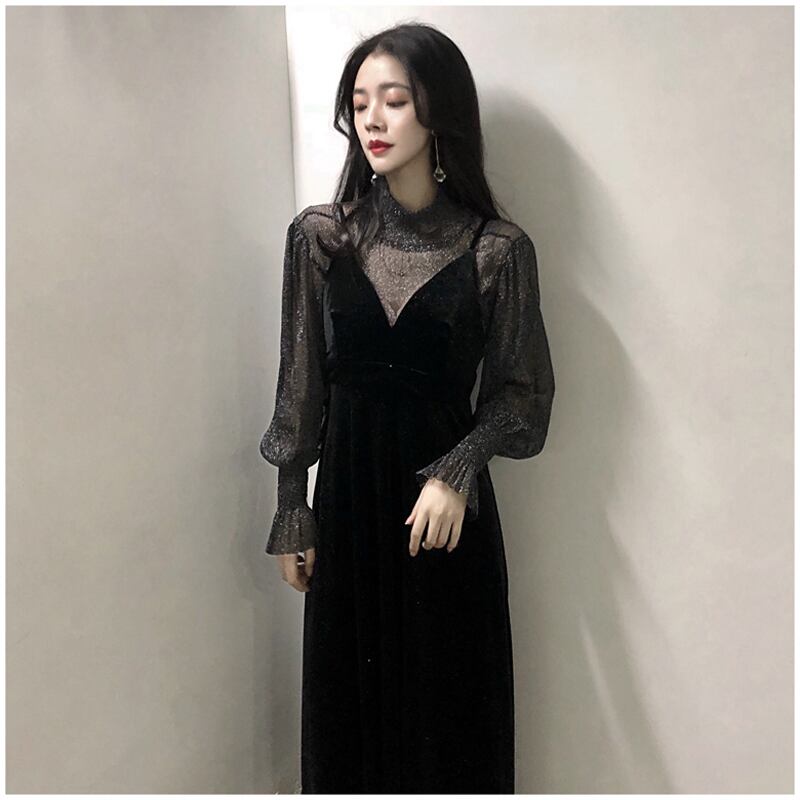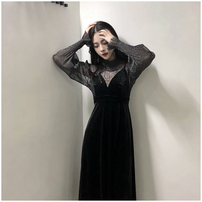 レトロ ロングワンピース 長袖 オシャレ 上質 パーテイー通勤 OL オフィス デート S M L LL 黒い レディース