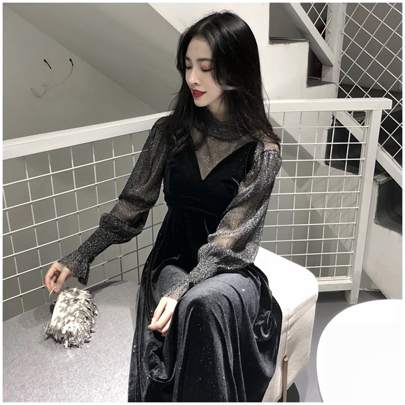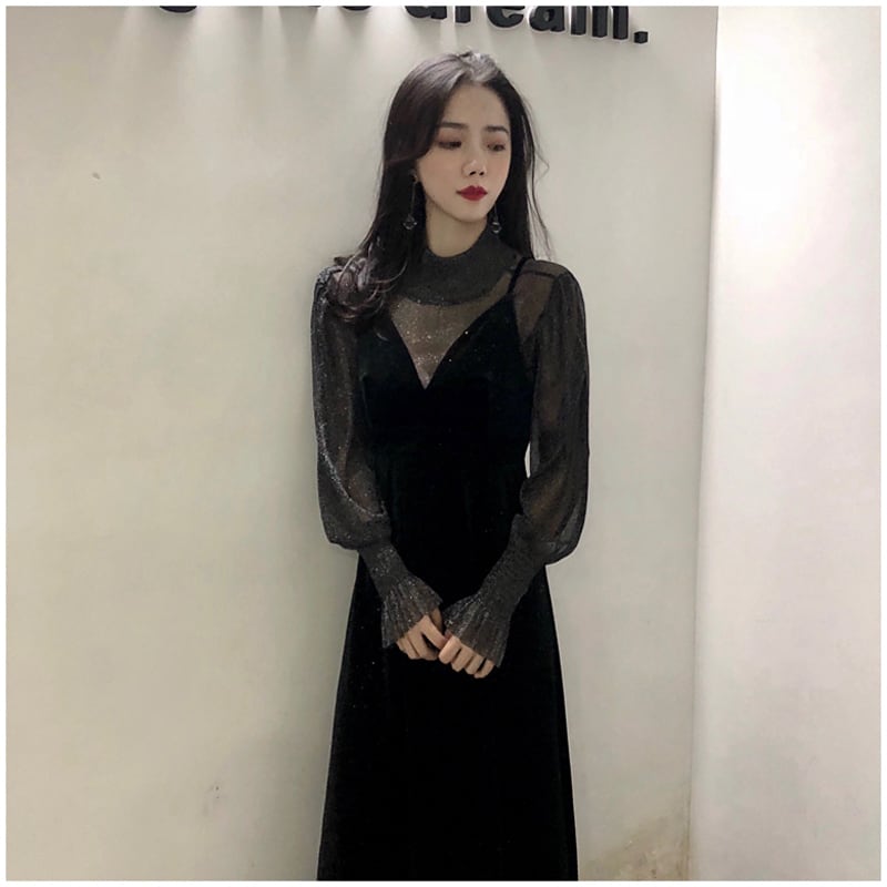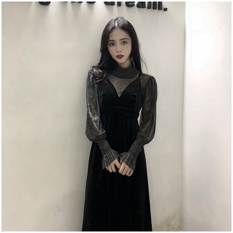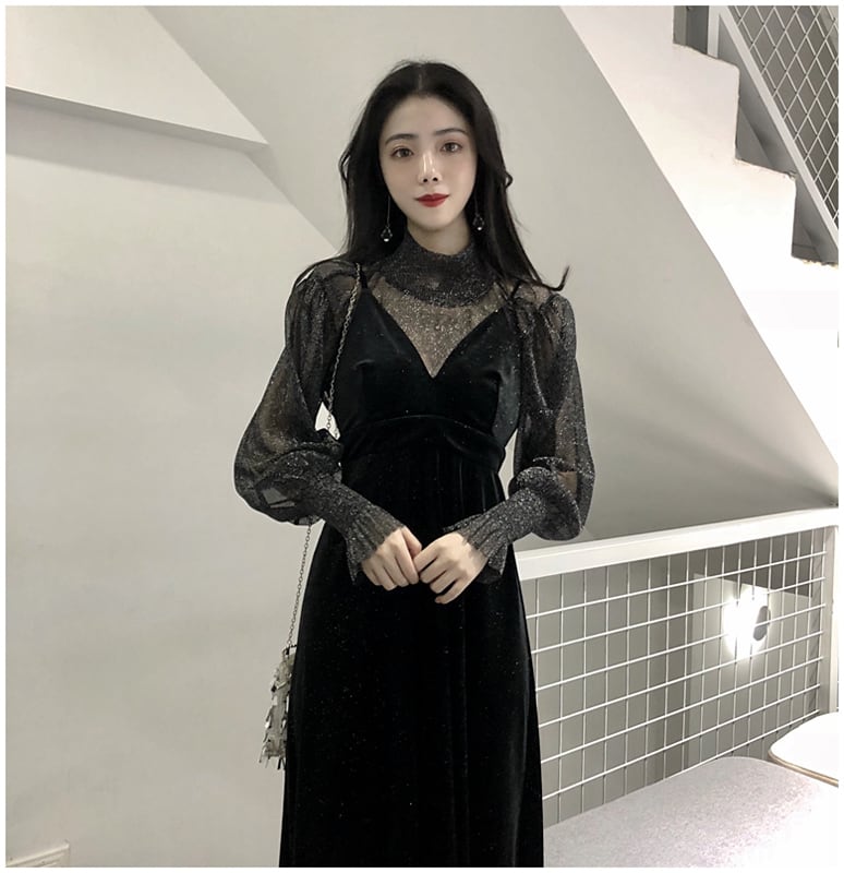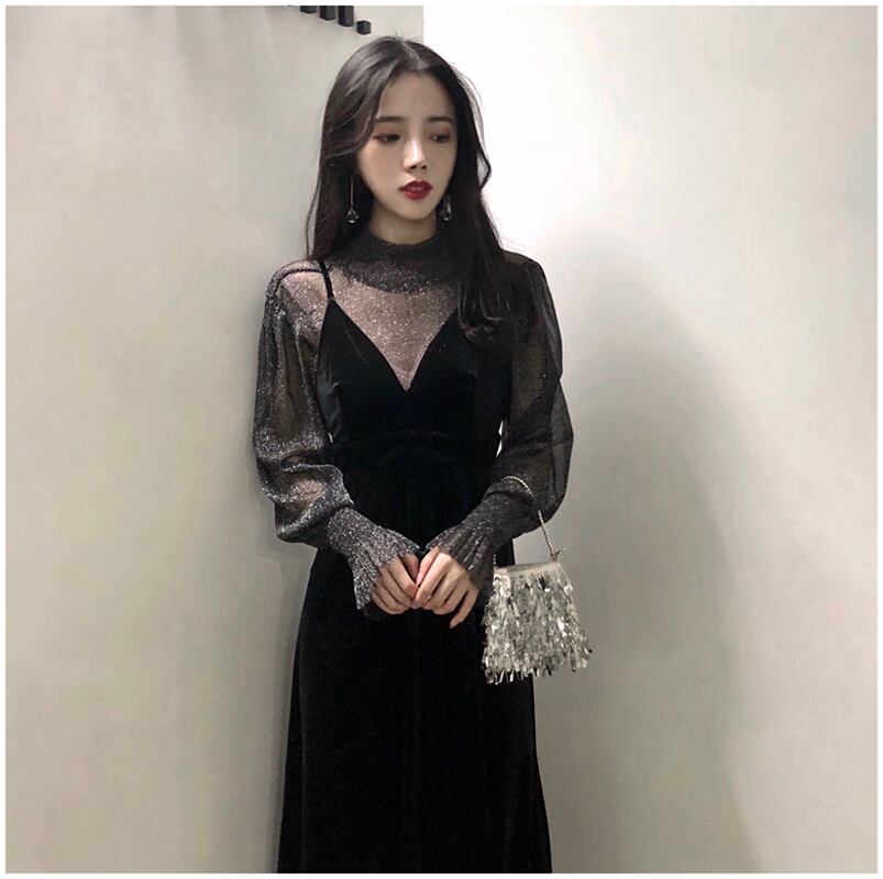レトロ ロングワンピース 長袖 オシャレ 上質 パーテイー通勤 OL オフィス デート S M L LL 黒い レディース