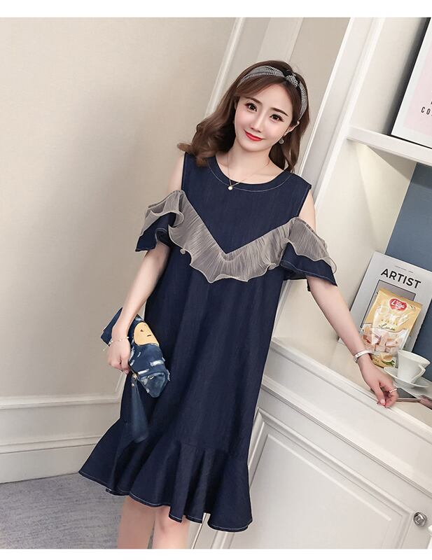 ワンピース ドレス カジュアルワンピース レディースファション シンプル エレガント ラウンドネックア メリカスリーブ ショート丈 デニム 大きいサイズ M L LL 3L ブルー 青い