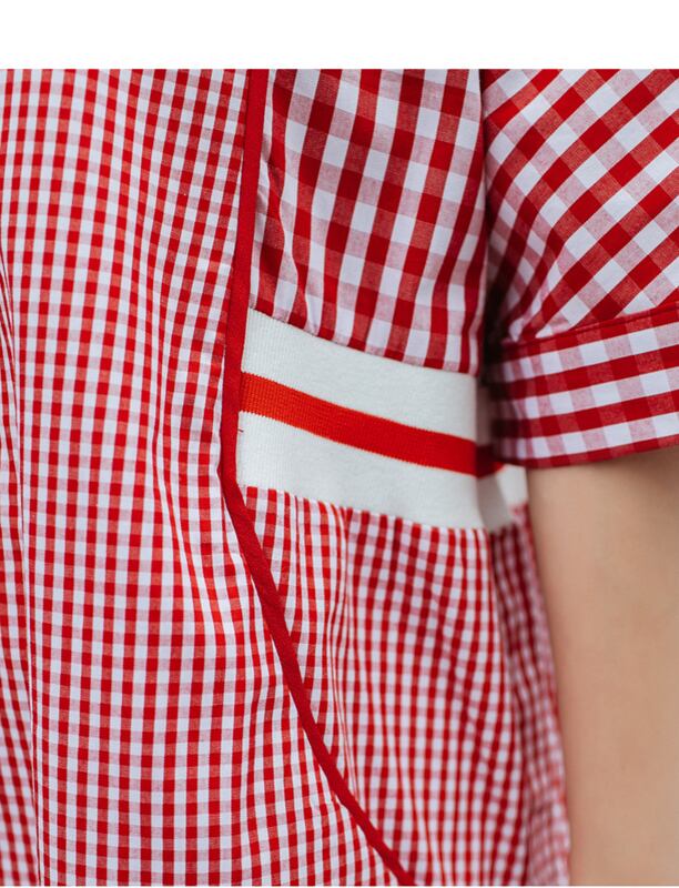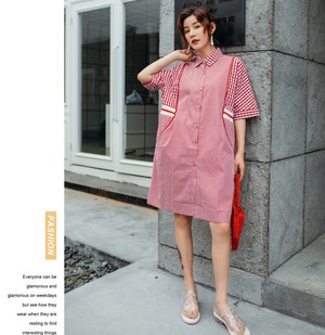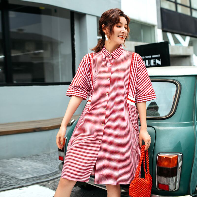 ワンピース ドレス レディースファション 普段着 着痩せ カジュアル シンプル 折り襟 五分袖 ショート丈 S M L チェック柄 レッド 赤い ゆったり デート 通勤 OL オフィス