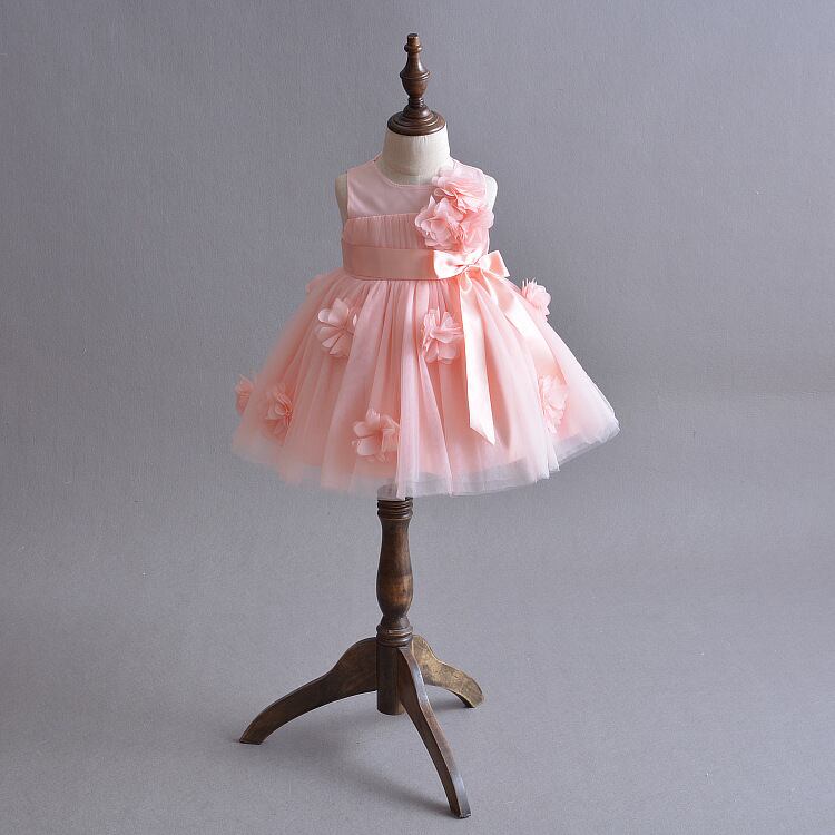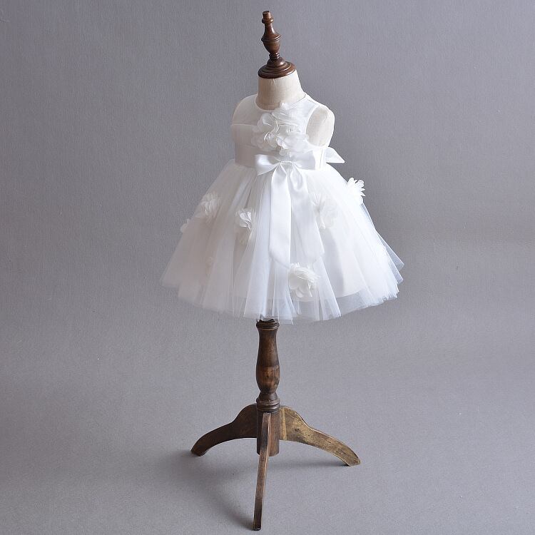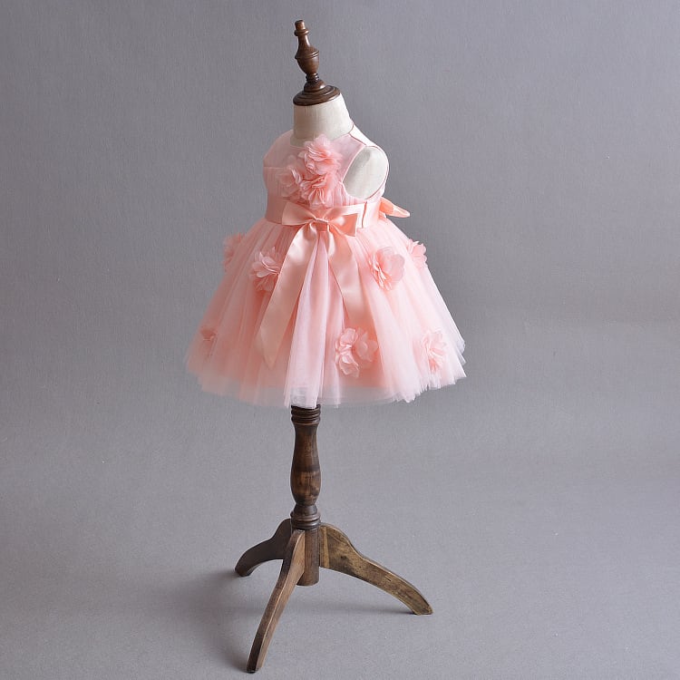 【出産祝い】ベビードレス 立体花 ノースリーブ ベビーワンピース 赤ちゃん 乳児 高品質 お宮参り お出かけ セレモニー ピンク ホワイト 59cm 66cm 73cm 85cm 90cm