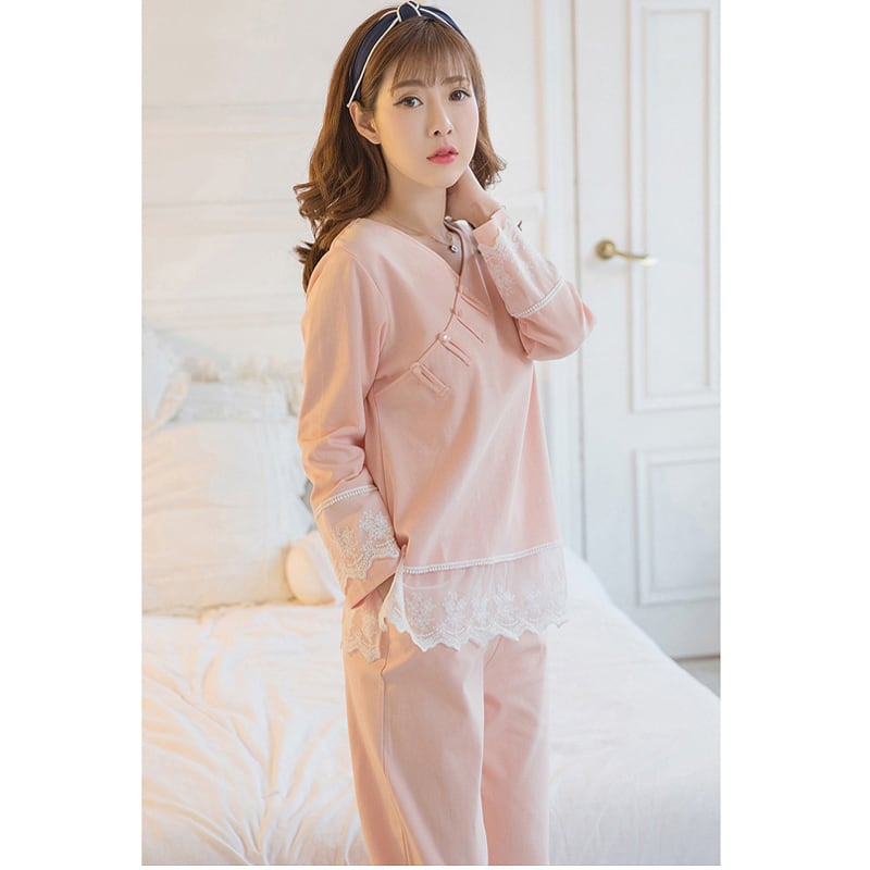 部屋着 チャイナ風ルームウェア パジャマ ナイトウェア 中華服 S M L LL 3L ピンク 上下セット 肌触りいい