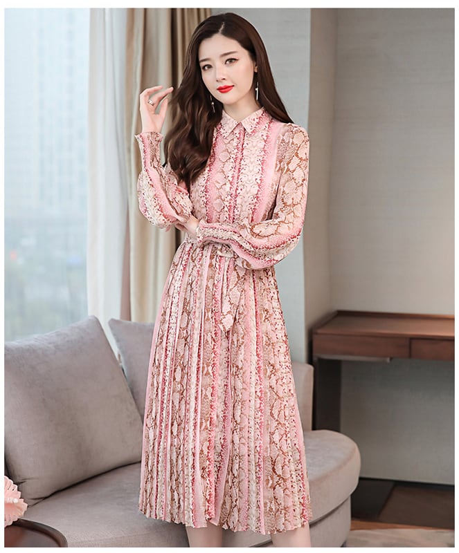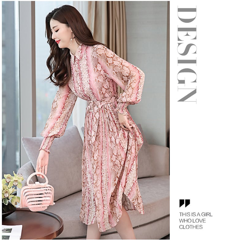 ロング丈ワンピース ロングドレス シフォンワンピース レディースファション スタンドネック 長袖 大きいサイズ S M L LL 3L ピンク ブルー 花柄