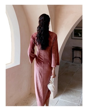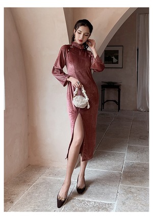 チャイナドレス中華服 演奏会 パーティー S M L LL 着痩せ 女子会 同窓会 ピンク ベルベット