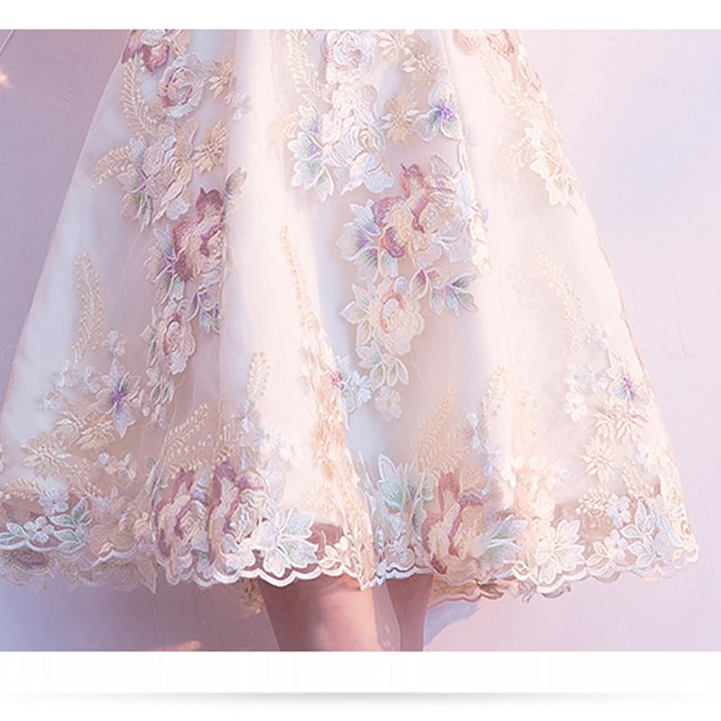 ショートチャイナドレス 刺繍入り 成人式 チャイナ風ワンピース 五分袖 XS~3L 卒業式 シャンパン