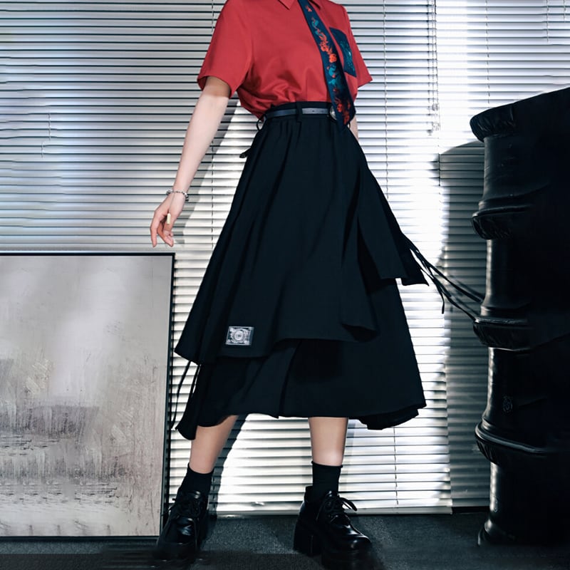 ✿ゴシック調アシンメトリスカート✿【古怪舍---眼球薔薇シリーズ】★チャイナ風スカート★ ボトムス 中華服 不規則 合わせやすい ブラック 黒い