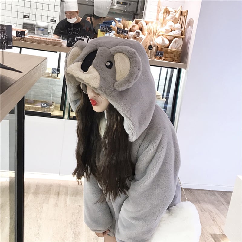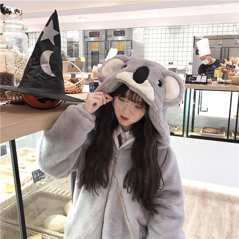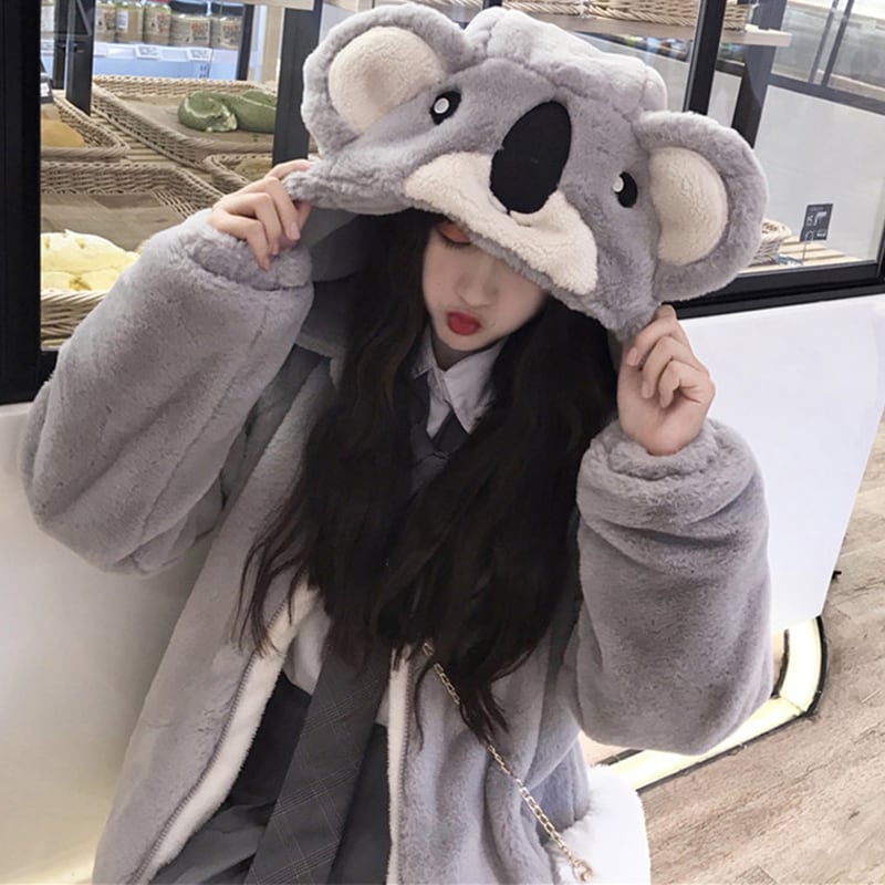 【萌量不足シリーズ】★超可愛いアウター★ ジャケット コアラ 厚て 防寒コート M L 暖か 秋冬着 グレー