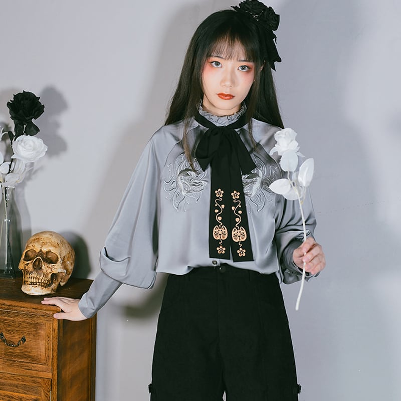 ✿人気商品再入荷✿【古怪舍---魍魎シリーズ】★チャイナ風シャツ★ 刺繍トップス オリジナル 可愛い チャイナ服 S M L 合わせやすい