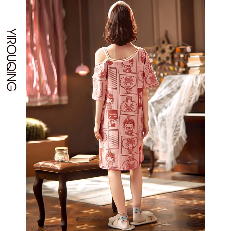 【IROUQシリーズ】★チャイナ風パジャマ★ ルームウェア ワンピース 肩出し コットン 大きいサイズ 可愛い
