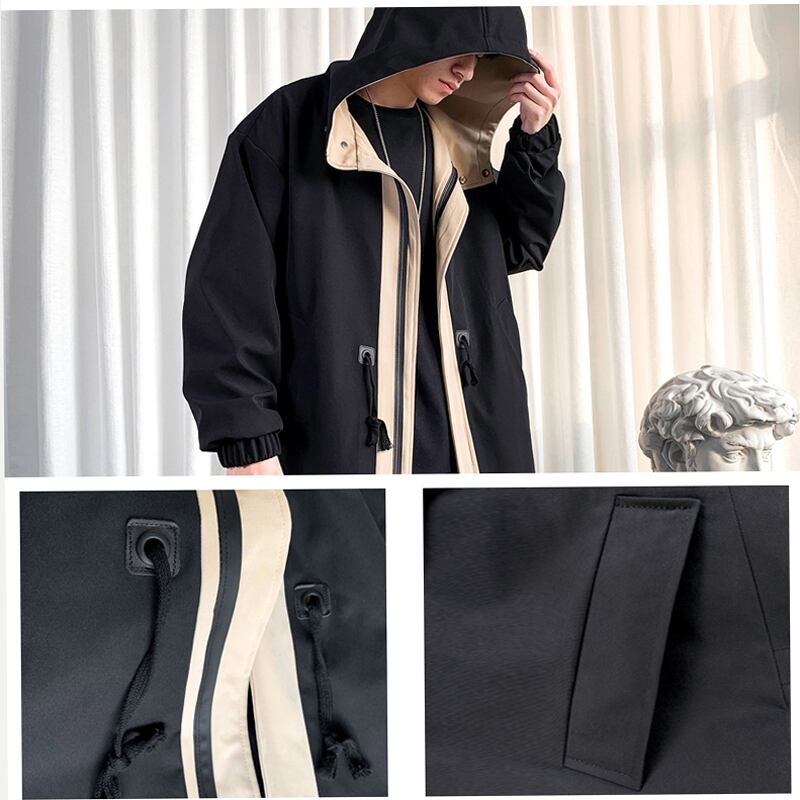 【加榮シリーズ】★トレンチコート★ 2color 黒orライトブラウン 綿入れタイプ選択可能 配色 アウター ロング丈