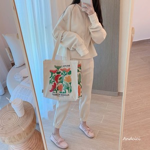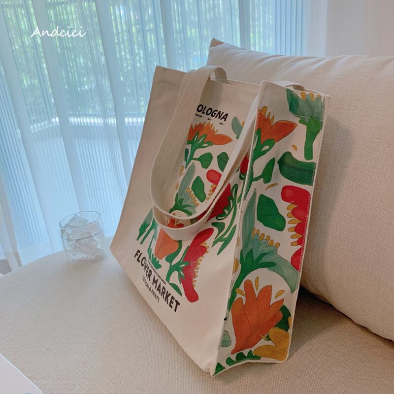 【Andciciシリーズ】★バッグ★ 大容量 油絵風 キャンパスバッグ 花柄 チューリップ 通学 デート 通勤
