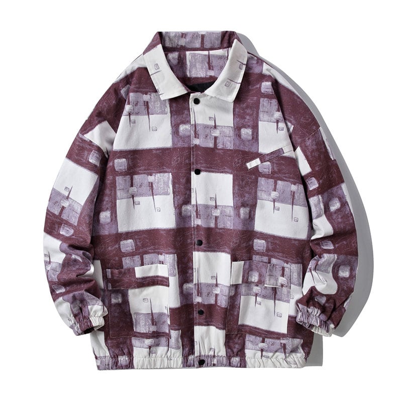 【繪春シリーズ】★ジャケット★ アウター 3color チェック柄 男女兼用 メンズ 大きいサイズ ブラウン グレー ワインレッド