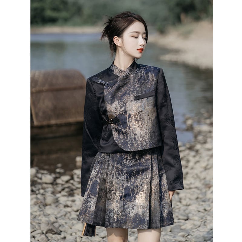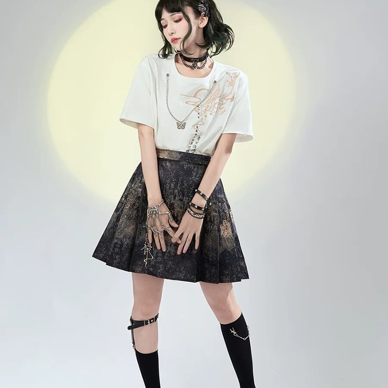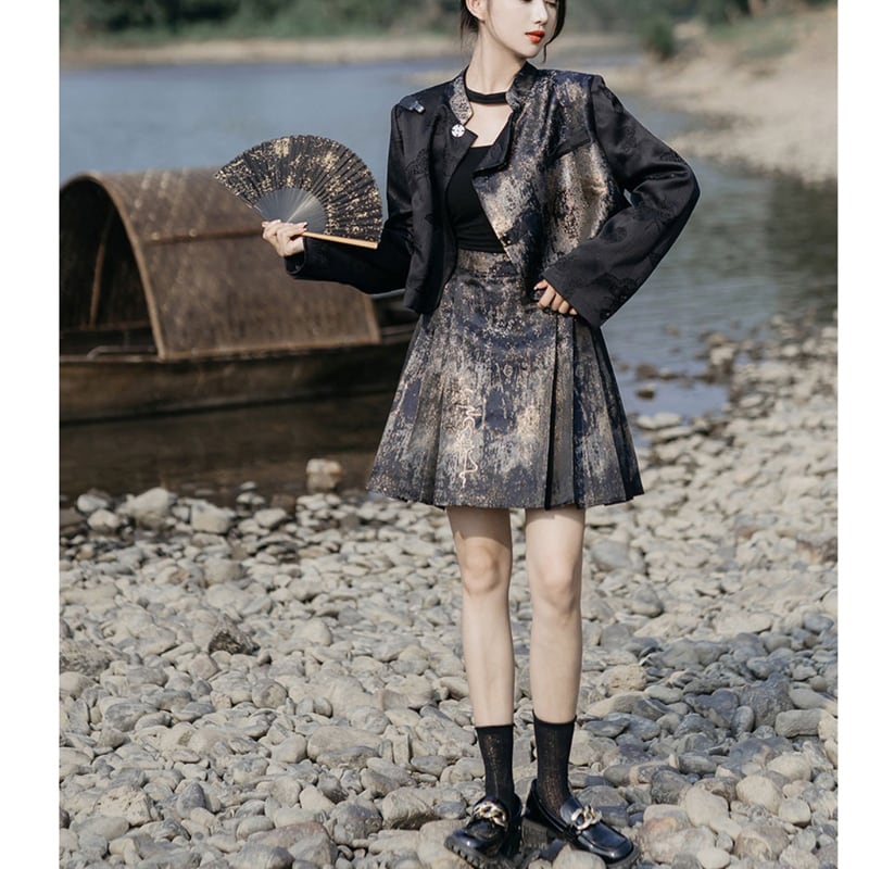 【卿棠シリーズ】★チャイナ風スカート★ ボトムス ミニスカート 刺繍 プリーツスカート 可愛い JK風